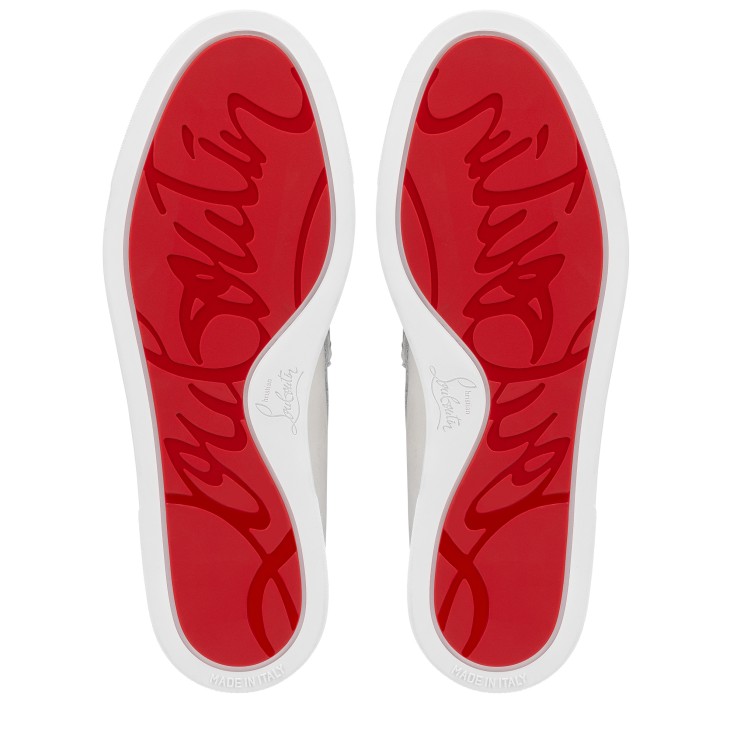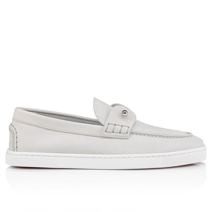 The Chambeliboat loafer for women features a sleek silhouette and supple structure. This elegant model is entirely crafted in Albâtre white nubuck. Showcasing Maison Christian Louboutin’s creativity, it features a metal piercing through the tongue. A summery model with a white rubber sole.