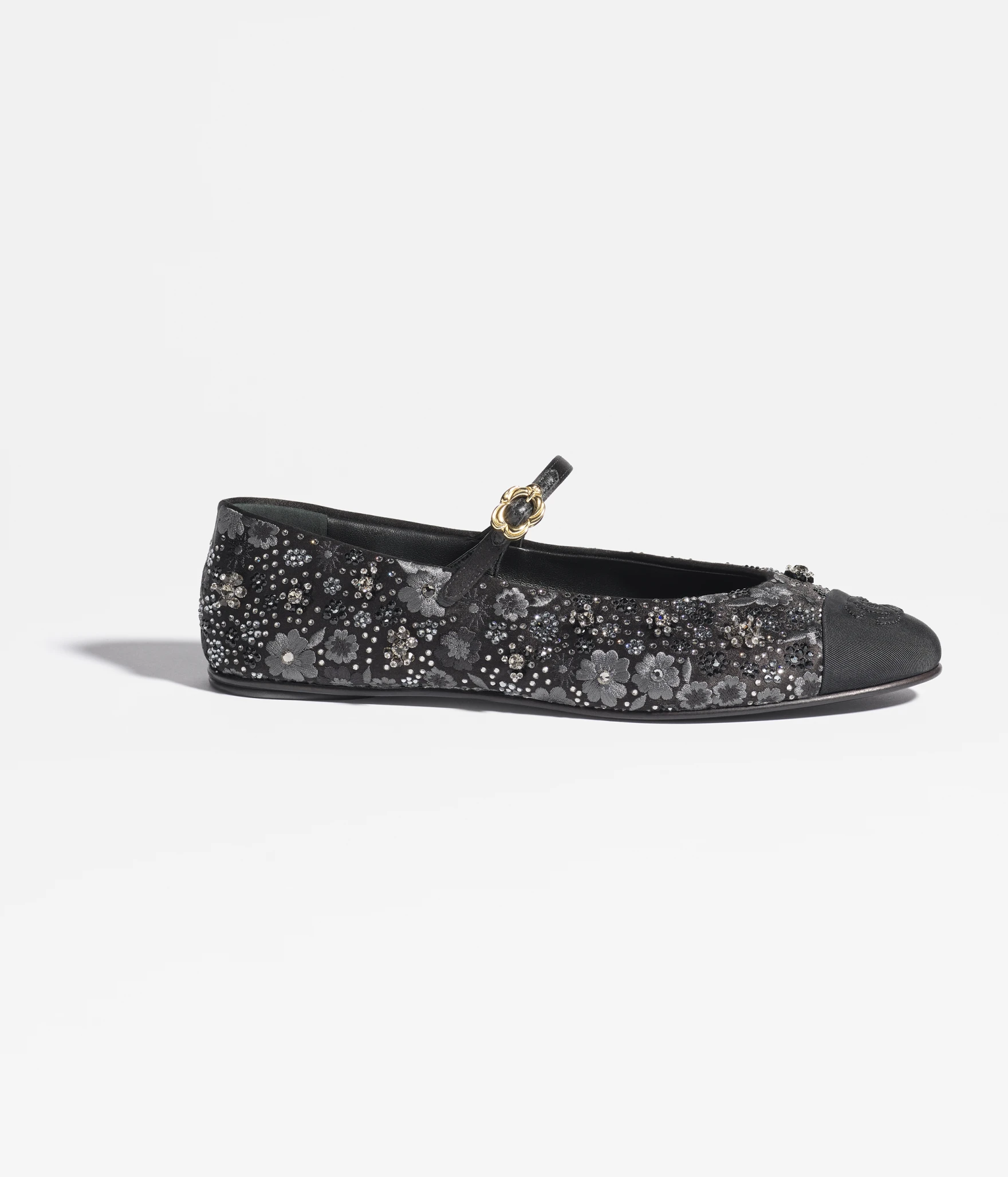 Mary Jane shoes are timeless in their simplicity. In the CHANEL 2024/25 Métiers d’art collection, unveiled in Hangzhou, China, they are reinterpreted in satin with floral motifs.