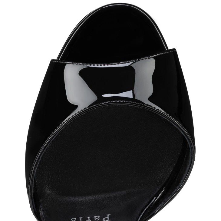 With its open toe, the Sandaloo elegantly reveals the foot. This platform sandal by Maison Christian Louboutin features a slim ankle strap and is set on a 130 mm square heel. It is entirely crafted in black patent calf leather.