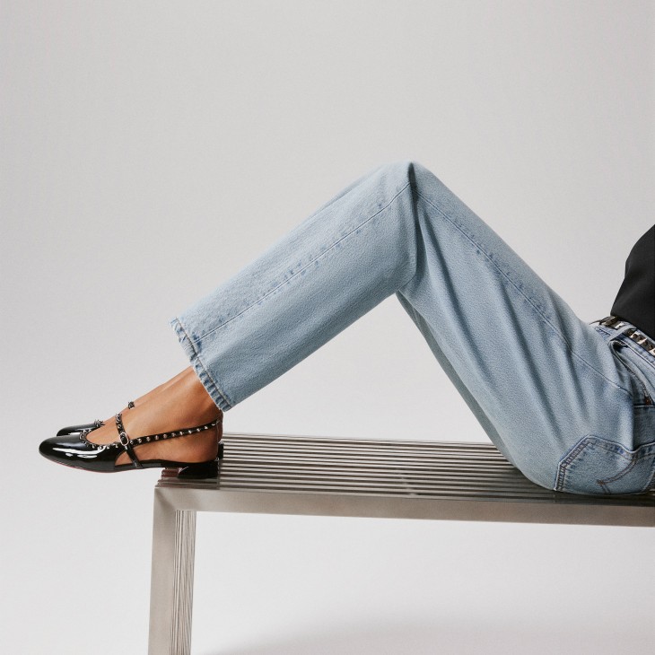 The Sweet Janispikes ballerina offers sophistication. It features a slightly rounded toe and is entirely crafted in black patent calf leather. Featuring a delicate strap at the back to reveal the foot, this shoe is adorned with Maison Christian Louboutin’s signature metal spikes. This model features a new ‘Everlasting Red’ sole thanks to an innovative coating technique that ensures resistance and lasting vibrancy for our signature Louboutin red.