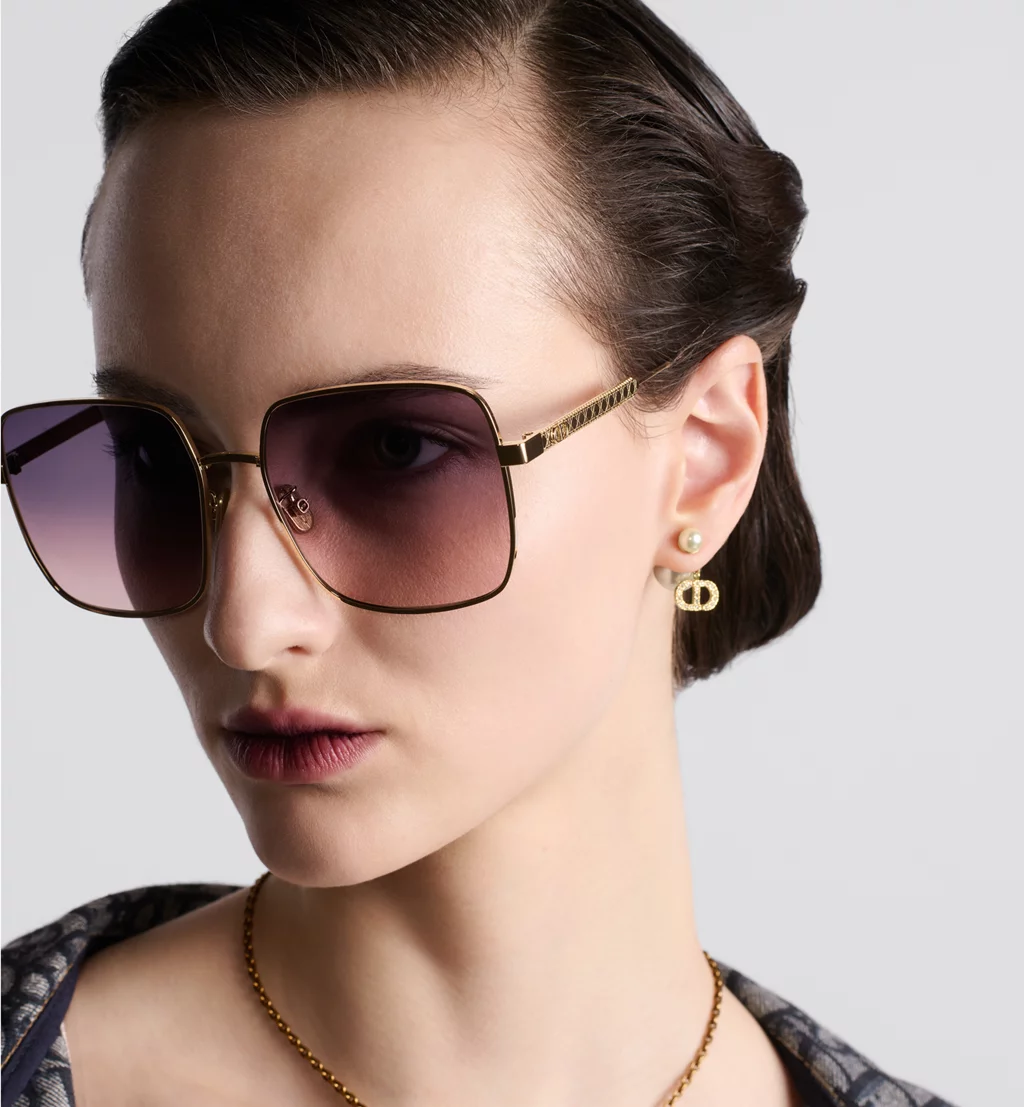 The DiorCannage S1U sunglasses are an elegant style adorned with hallmark details. The gold-finish metal square frame stands out with delicate engraving on the temples showcasing the Cannage motif and CD signature. Completed by gradient purple-to-pink lenses, the sunglasses will lend a modern and refined touch to any attire.-