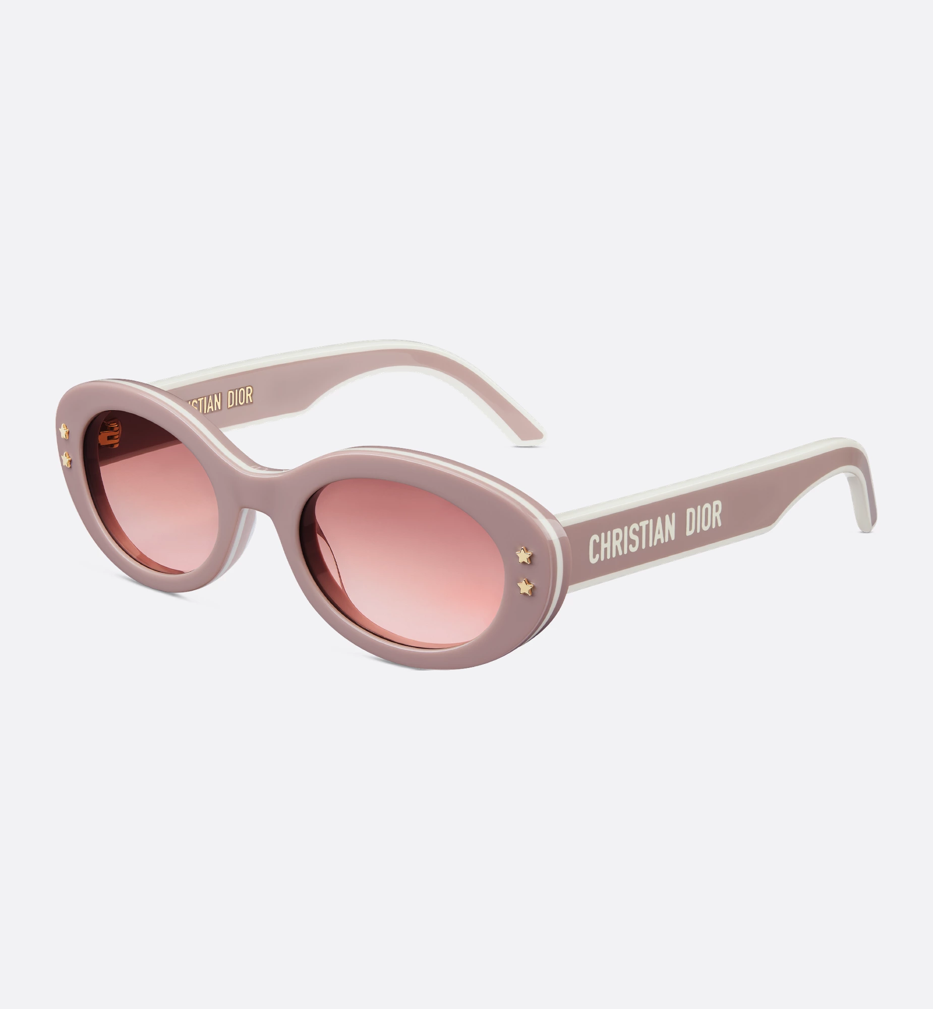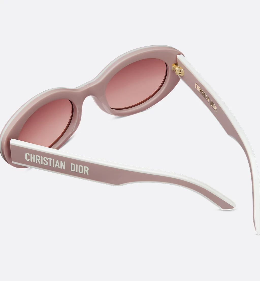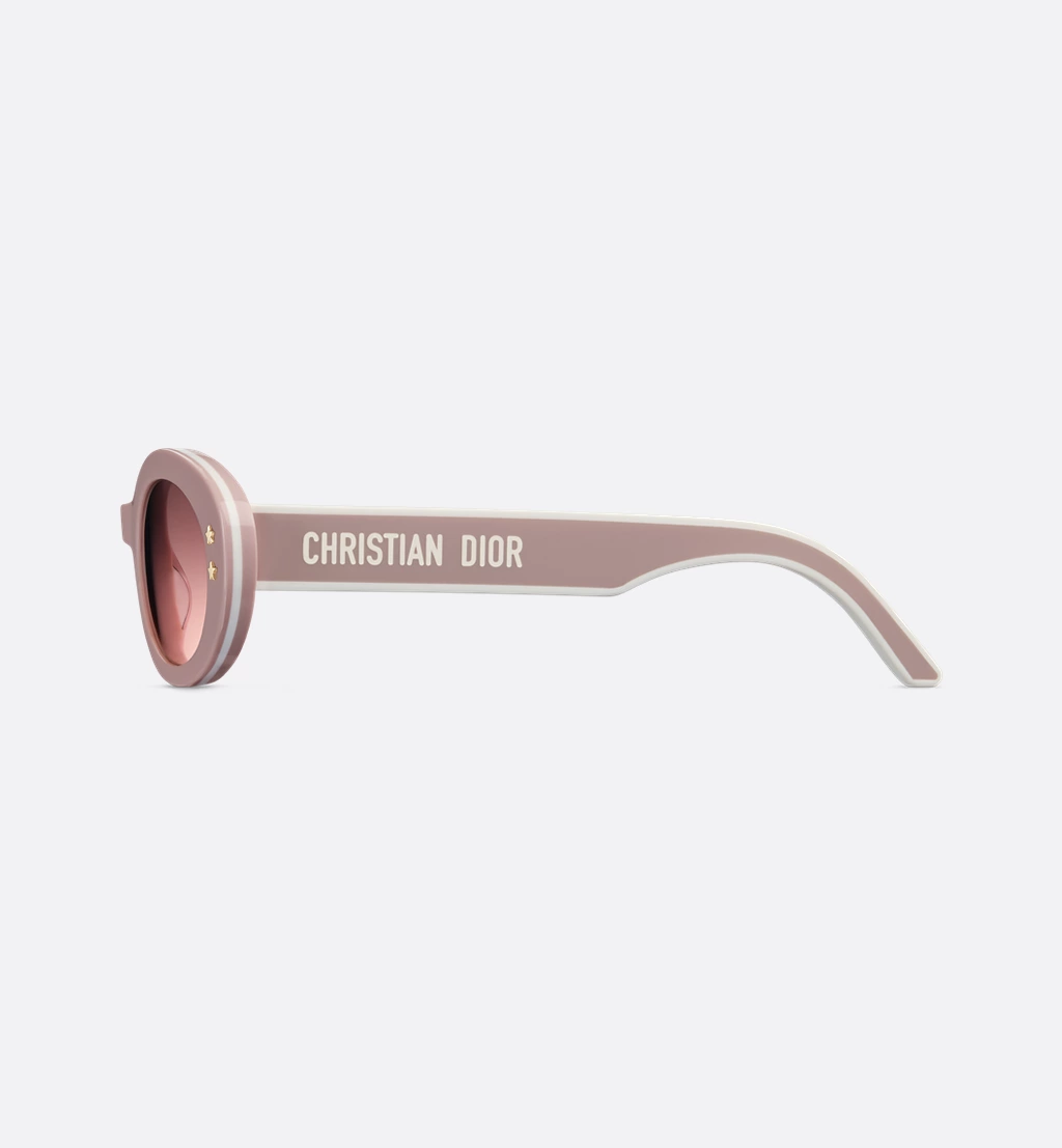 • The DiorPacific B4I sunglasses are a modern low oval design. The pink triple-layer effect acetate frame is adorned with gold-finish star details on the front, while the acetate temples present a pink and white double-layer effect, together with the Christian Dior signature. Completed by gradient brown-to-pink lenses, the new essential style will lend a contemporary touch to any look.