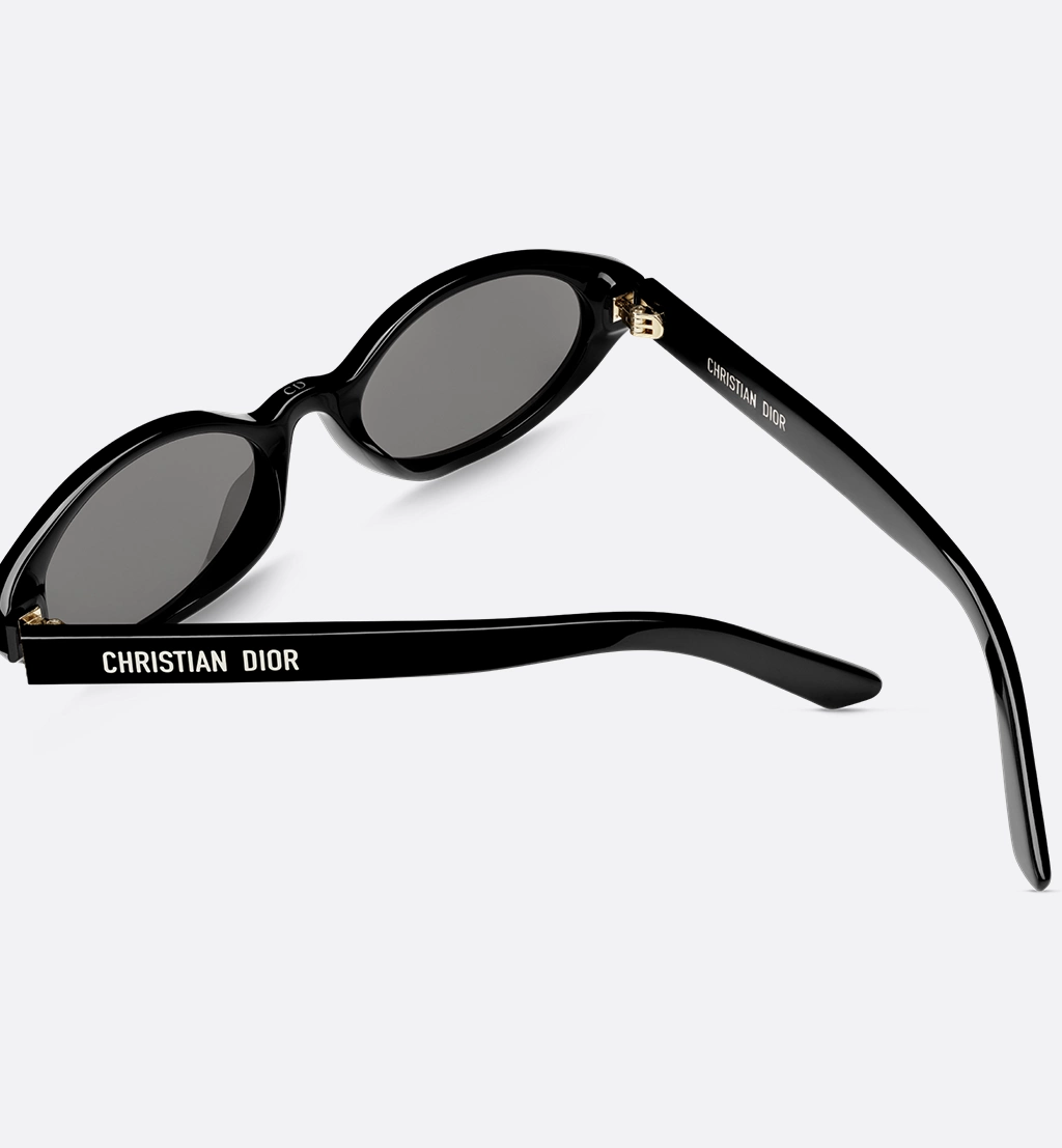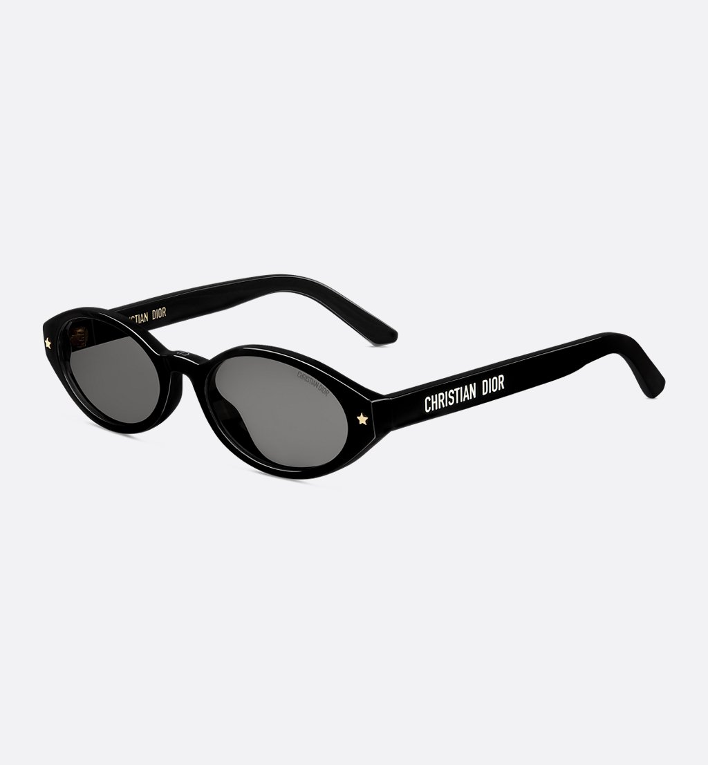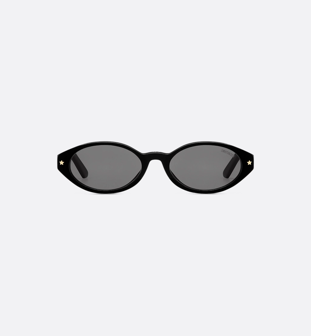 The DiorPacific R1I sunglasses elevate the line with a contemporary low oval shape. The black acetate frame is adorned with gold-finish star details on the front, while the temples feature the Christian Dior signature. Completed by gray lenses, the essential style will lend an elegant touch to any look.-