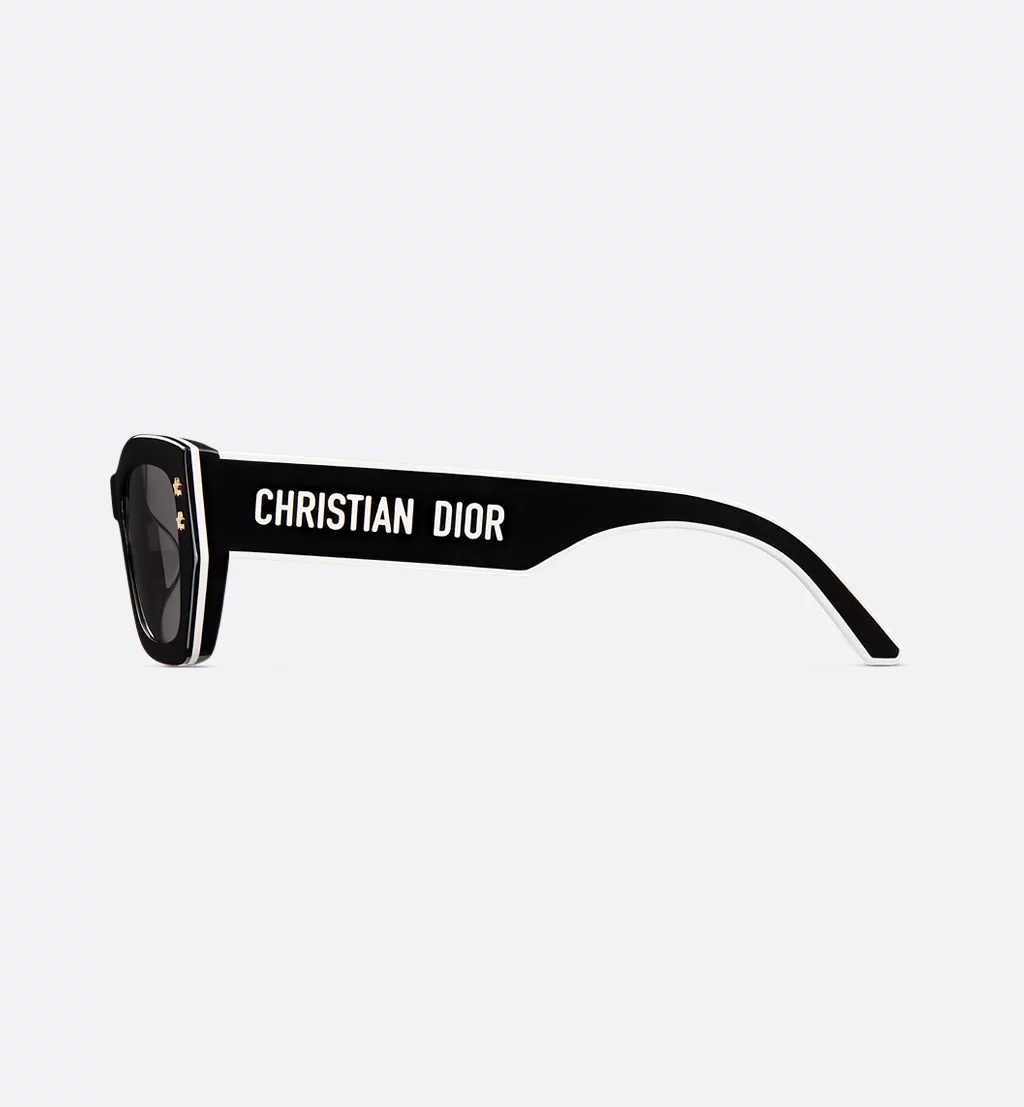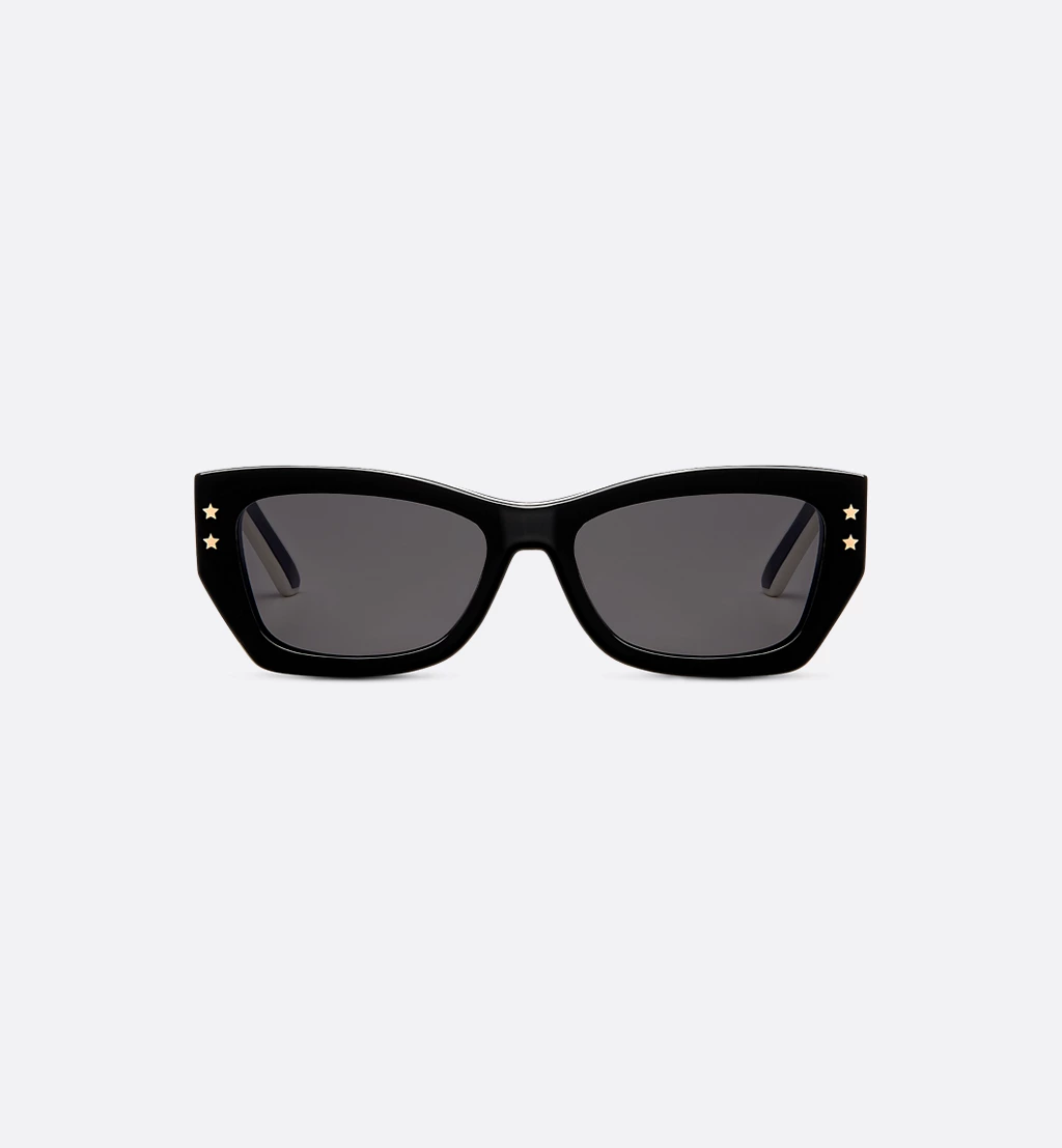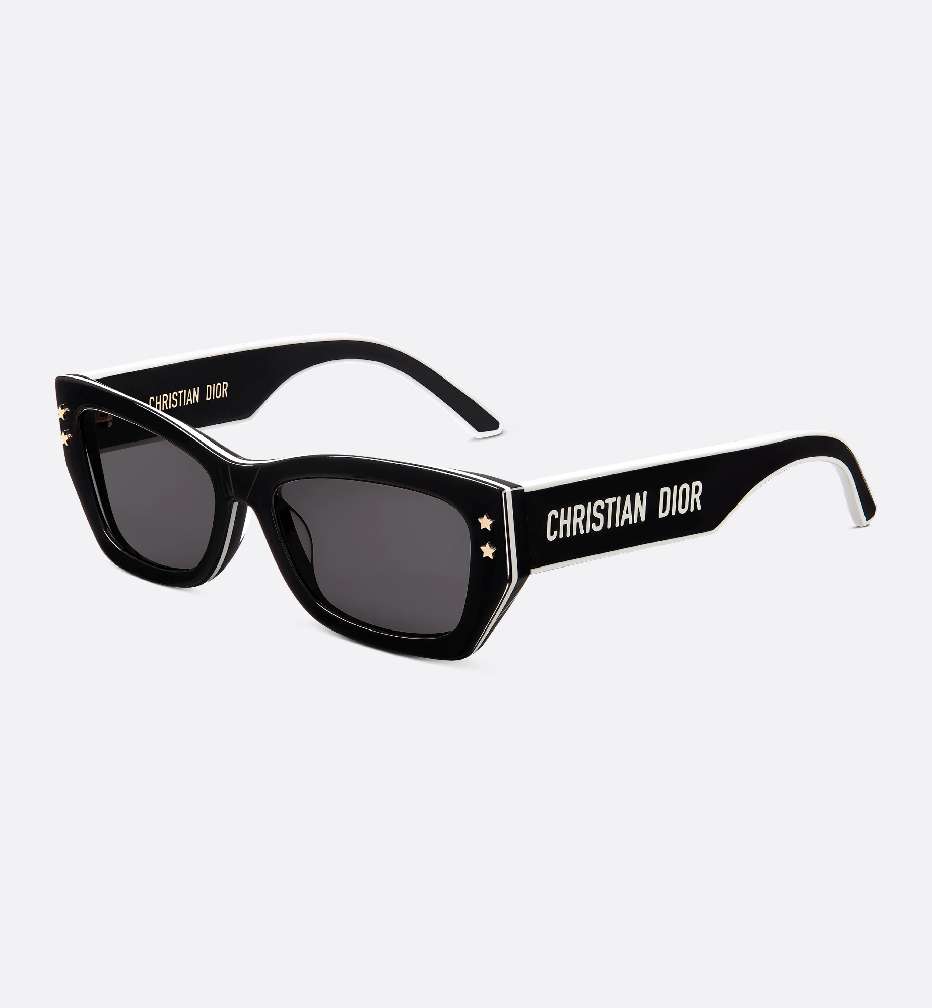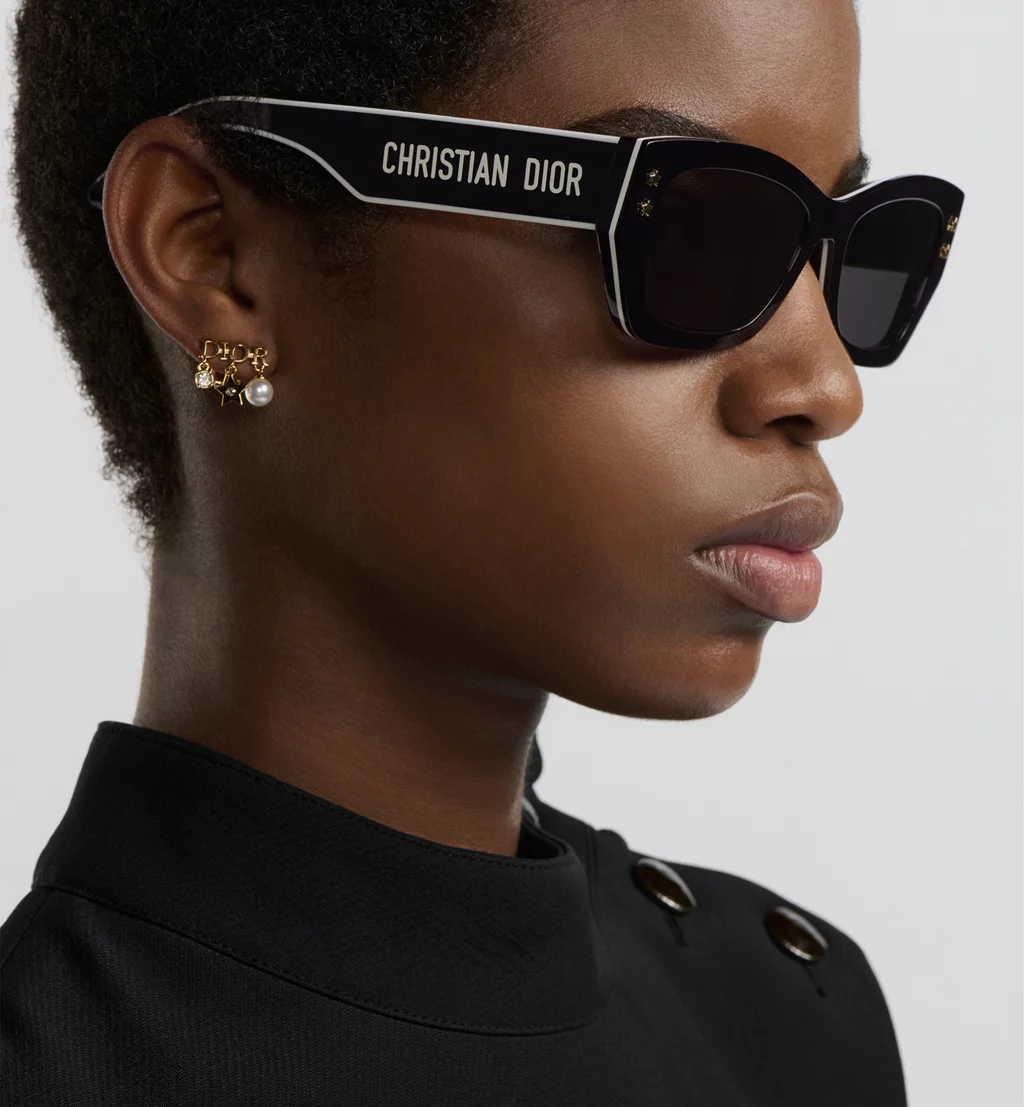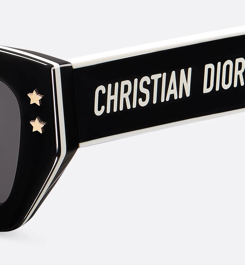 The DiorPacific S2U sunglasses are a modern and bold rectangular design. The black acetate frame is adorned with gold-finish star details on the front, while the temples showcase a triple-layer effect in black and latte featuring the Christian Dior signature. Completed by gray lenses, the new essential style will lend a unique touch to any look.