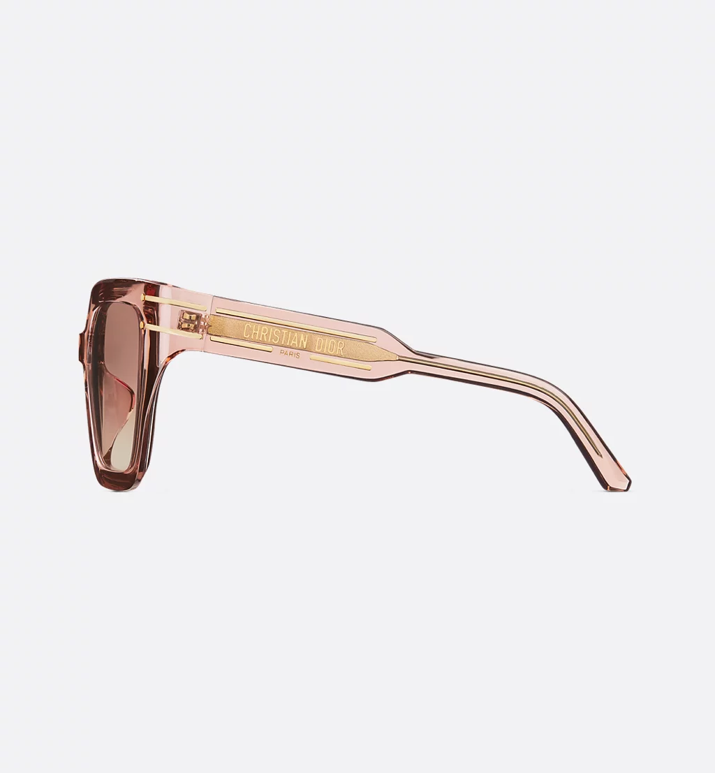 The DiorSignature S10F sunglasses enhance the House’s iconic line with an elegant square style. The ultra-thin and lightweight transparent pink acetate frame features temples embellished with the Christian Dior Paris signature and gold-finish metal lines that extend toward the lenses. Completed by brown-to-pink gradient lenses, the new essential style will elevate all looks with a couture touch.-