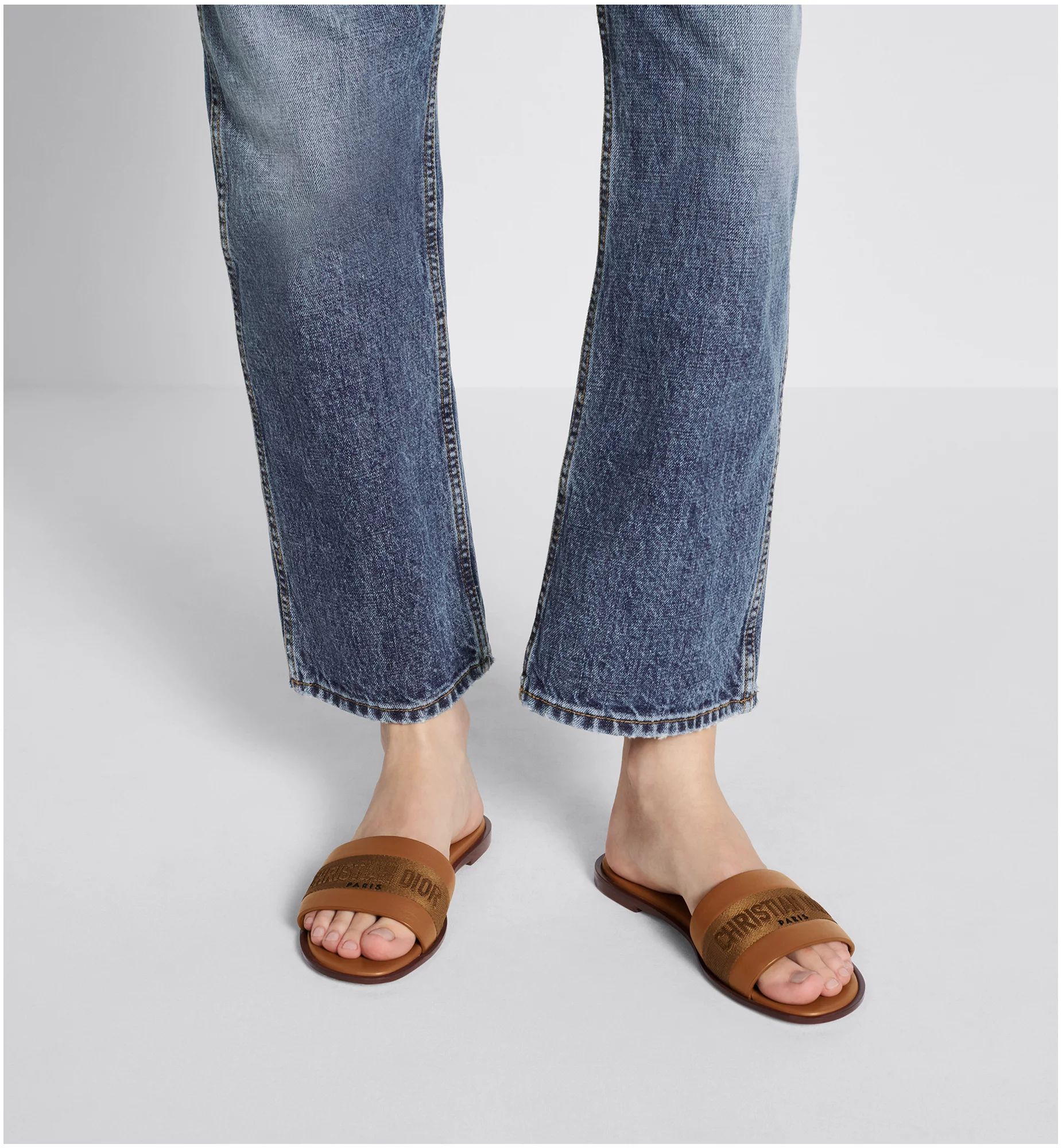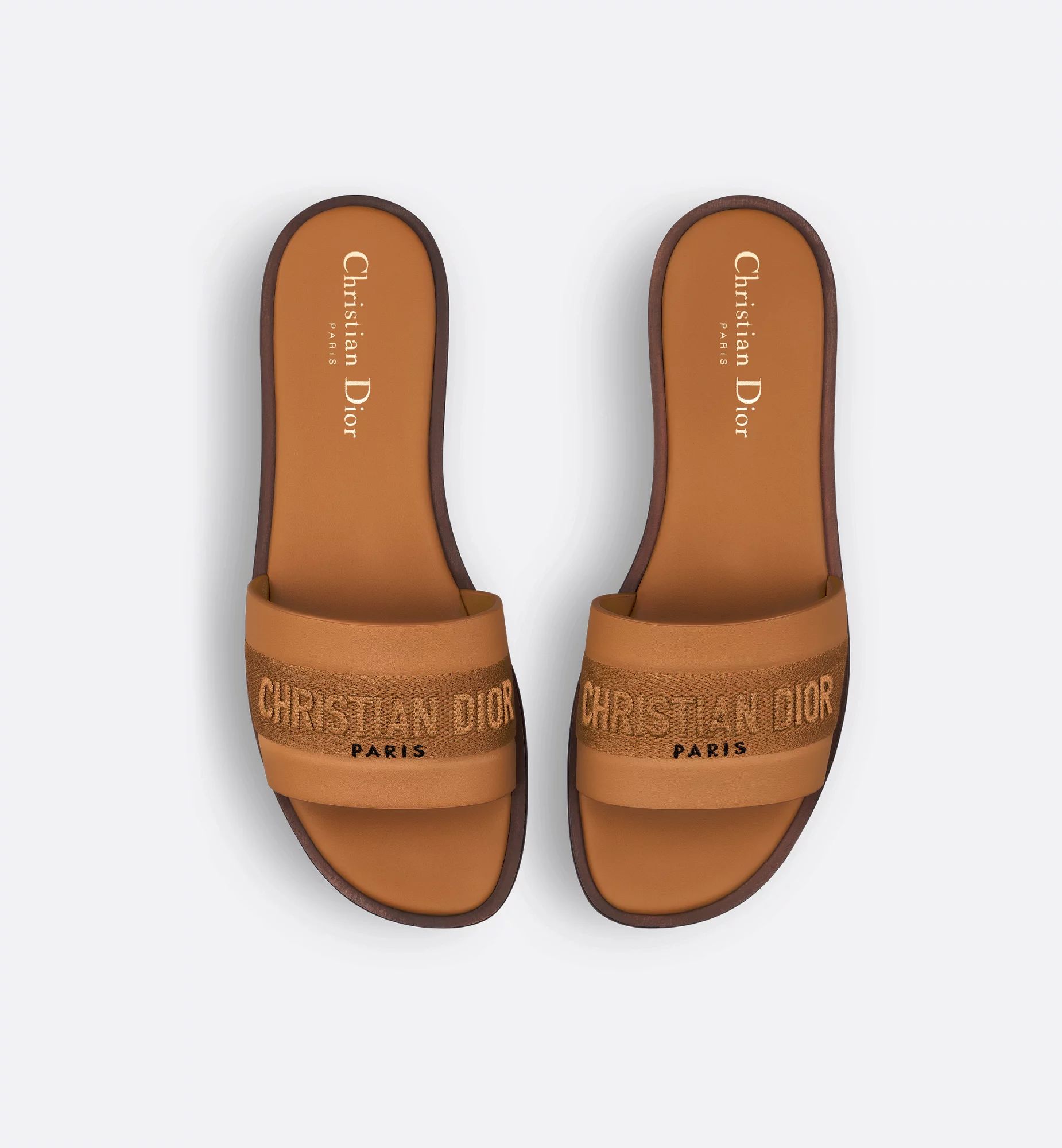 The Dway slide revisits a timeless and emblematic silhouette. The upper in camel calfskin and cotton embroidered with the Christian Dior Paris signature instantly stands out, while the padded leather insole offers ultimate comfort. Its streamlined design allows it to be easily slipped on to complete a laid-back outfit.