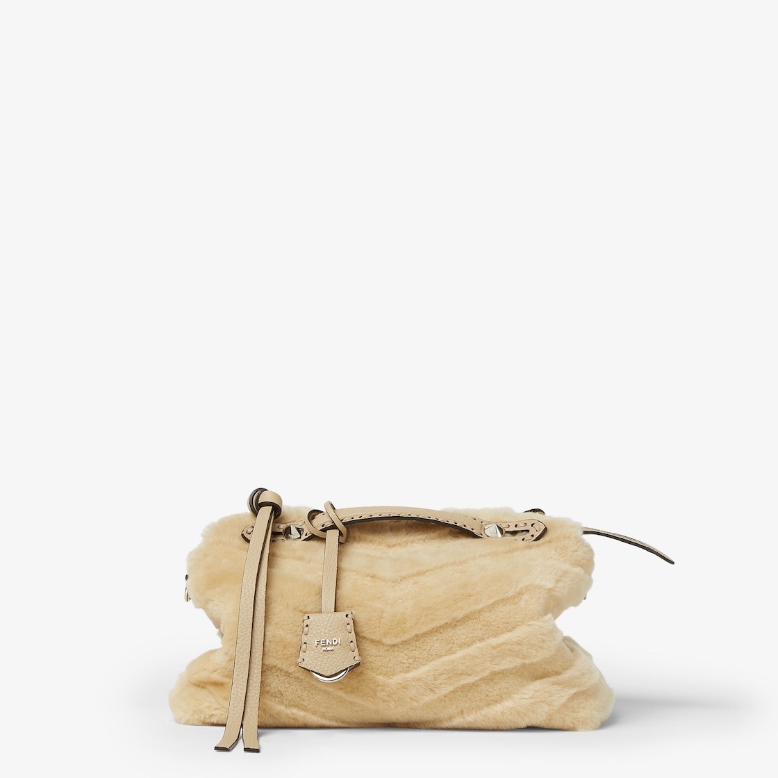 FENDI By The Way Selleria Medium Beige sculpted shearling bag with 192 hand-sewn topstitches
