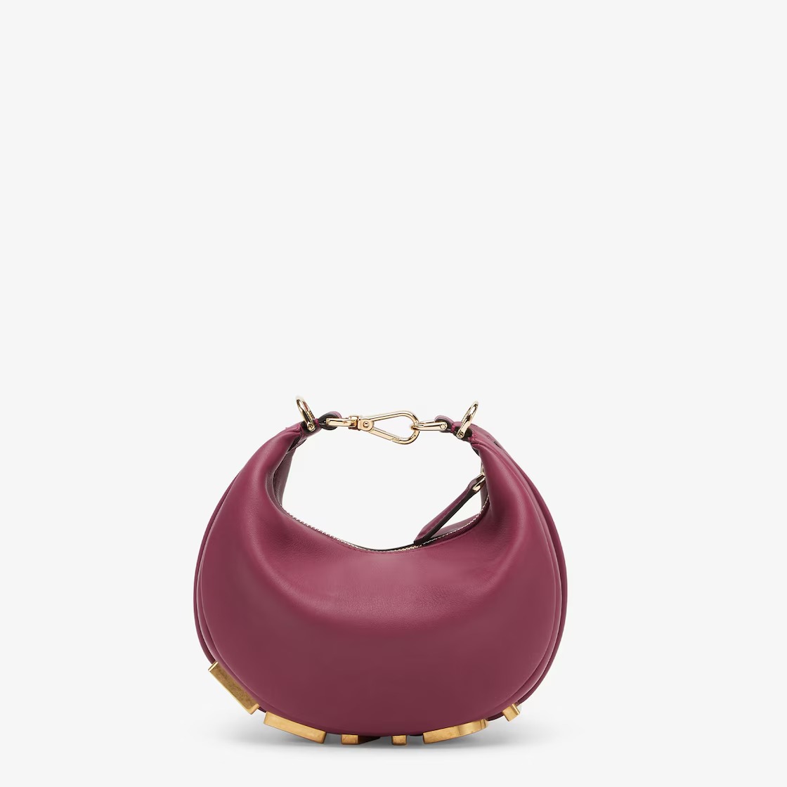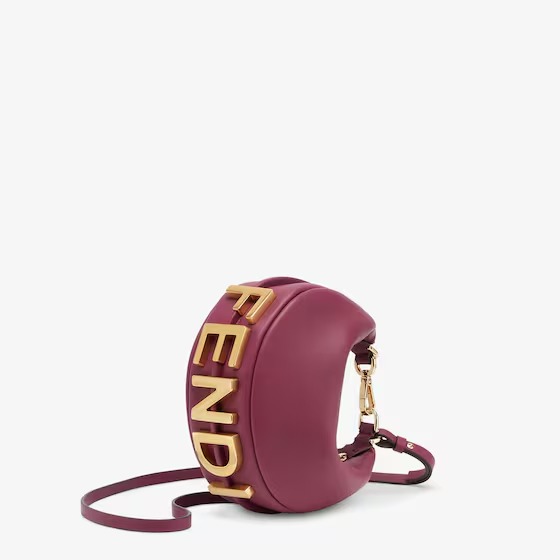 Mini hobo bag, part of the collection curated with designer Stefano Pilati, made of soft burgundy leather, embellished with vintage gold metal FENDI lettering.