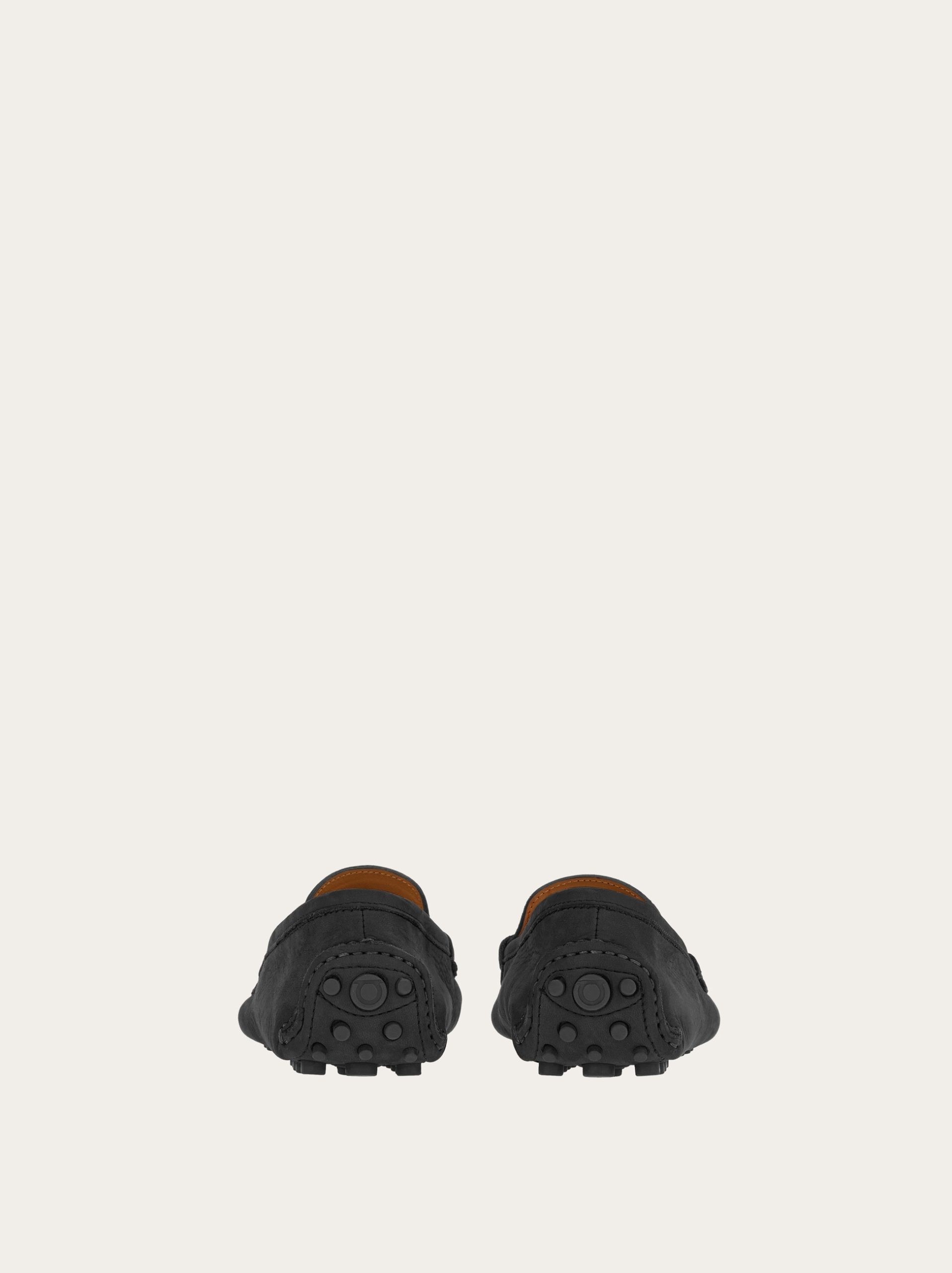 Forever classics are those items in our wardrobe that literally “spark joy” with each and every wear. This new take on a gentlemen’s classic is ideal for off duty chic: made of soft nubuck with a natural grain, this driver moccasin is textbook Ferragamo. The finest leather features visible stitching on the tray, and rubber nubs that rise up at the back of the heel. Across the instep sits a golden Gancio bit, for an elegant finish.
