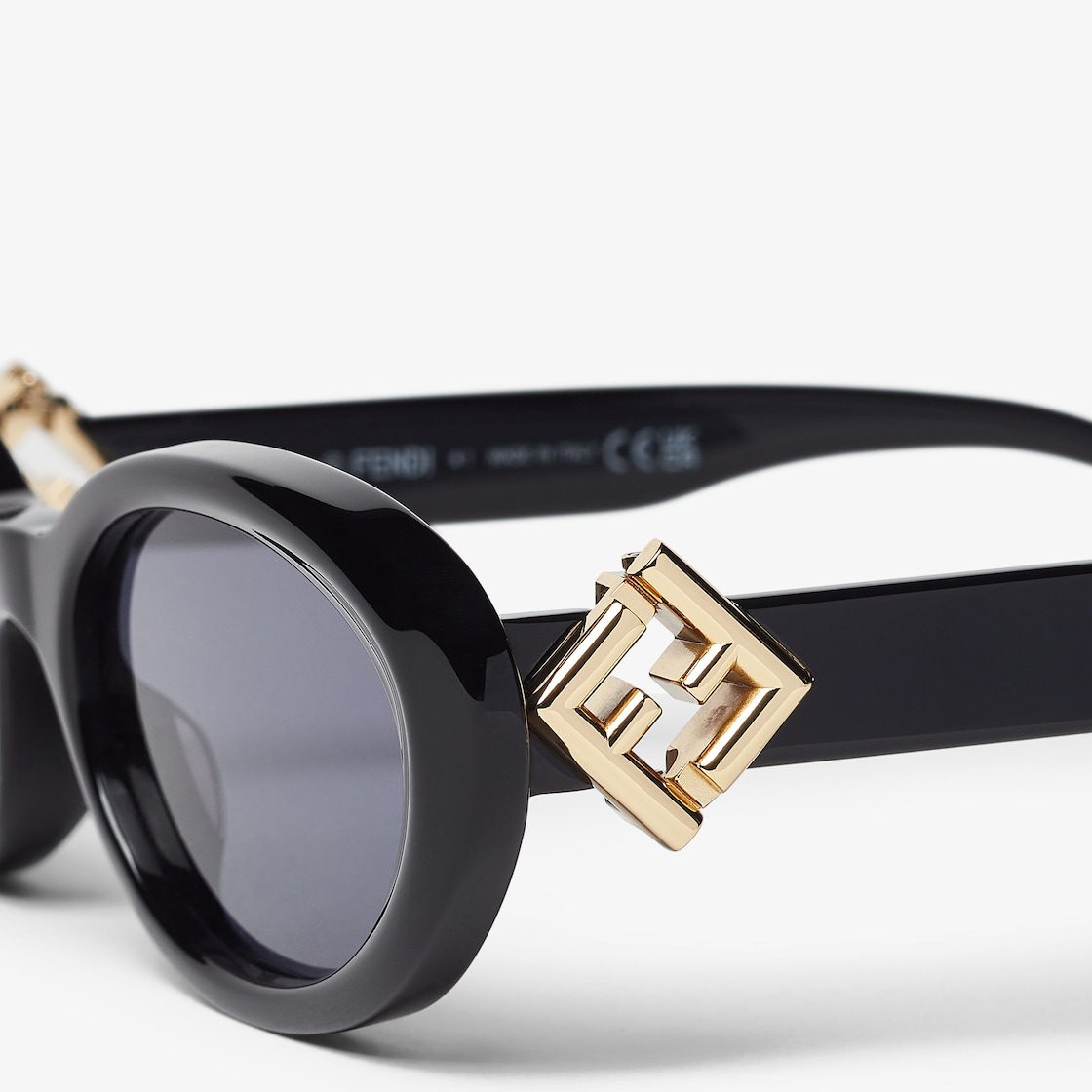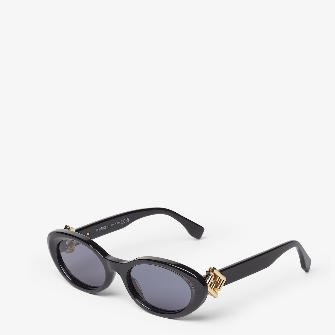 Oval FF Diamonds glasses in black acetate. Temples with functional FF Diamonds hinges in gold-colored metal. Dark blue lenses.