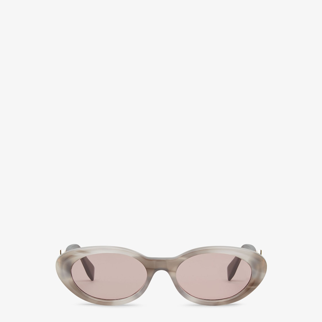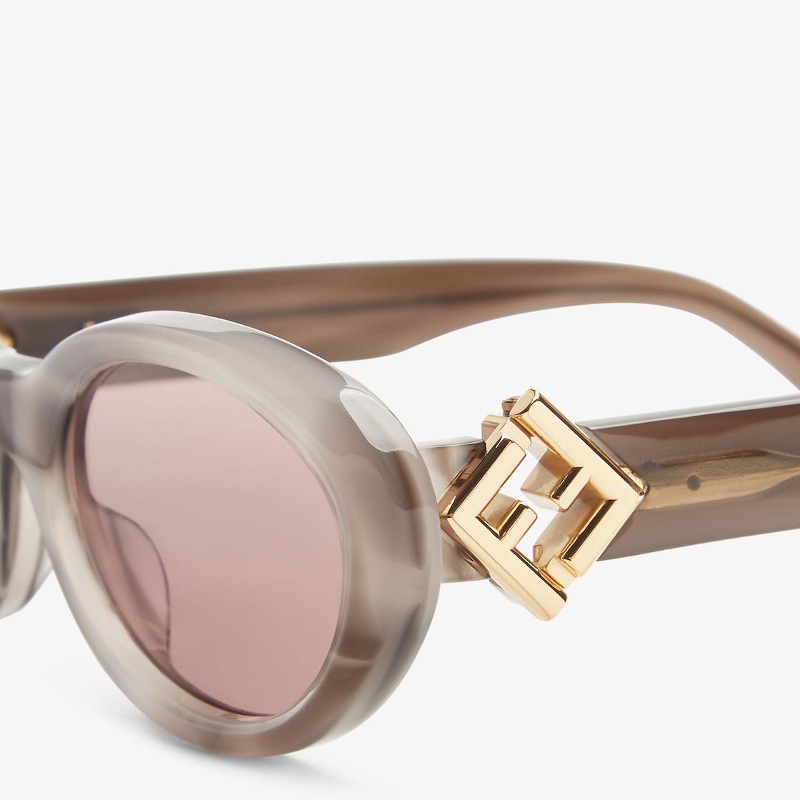 Oval FF Diamonds glasses in gray opalescent acetate. Temples with functional FF Diamonds hinges in gold-colored metal. Mauve pink lenses.