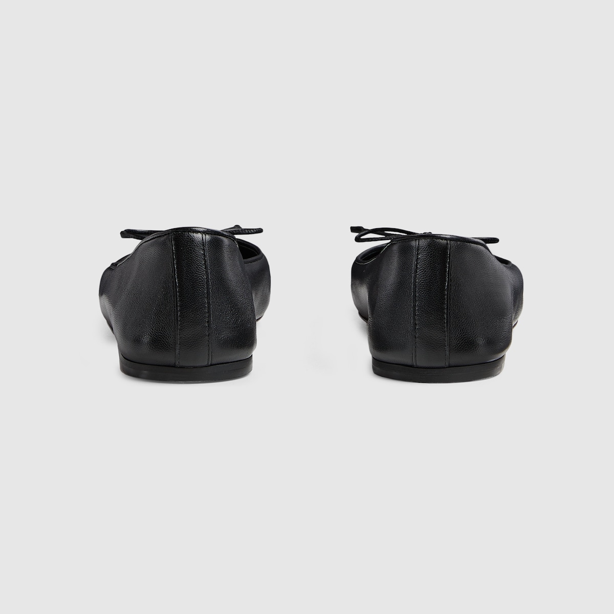 This elegant and timeless ballet flat is crafted from a smooth leather with a patent toe cap. A delicate bow lends a touch of femininity, while a light gold-toned Double G hardware makes a subtle nod to one of the House’s most recognized emblems.