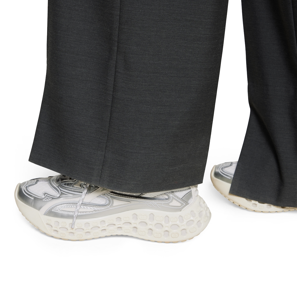 In the Spring Summer 2025 collection, this Gucci cub3d trainer blends innovative materials and construction. The upper is a mix of Demetra and mesh, featuring details created with a high frequency technique, while the sole combines an EVA-filled interior and TPU on the outside, complete with a 3D Interlocking G pattern.