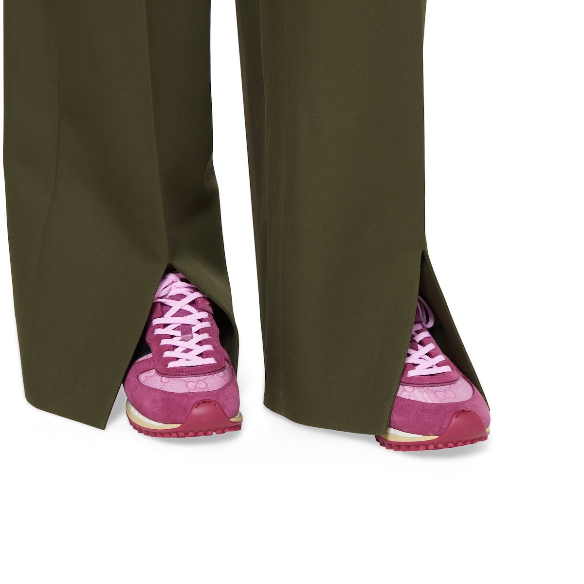 - Tongue with 3D Gucci script logo and Interlocking G, created with a high-frequency embossing process