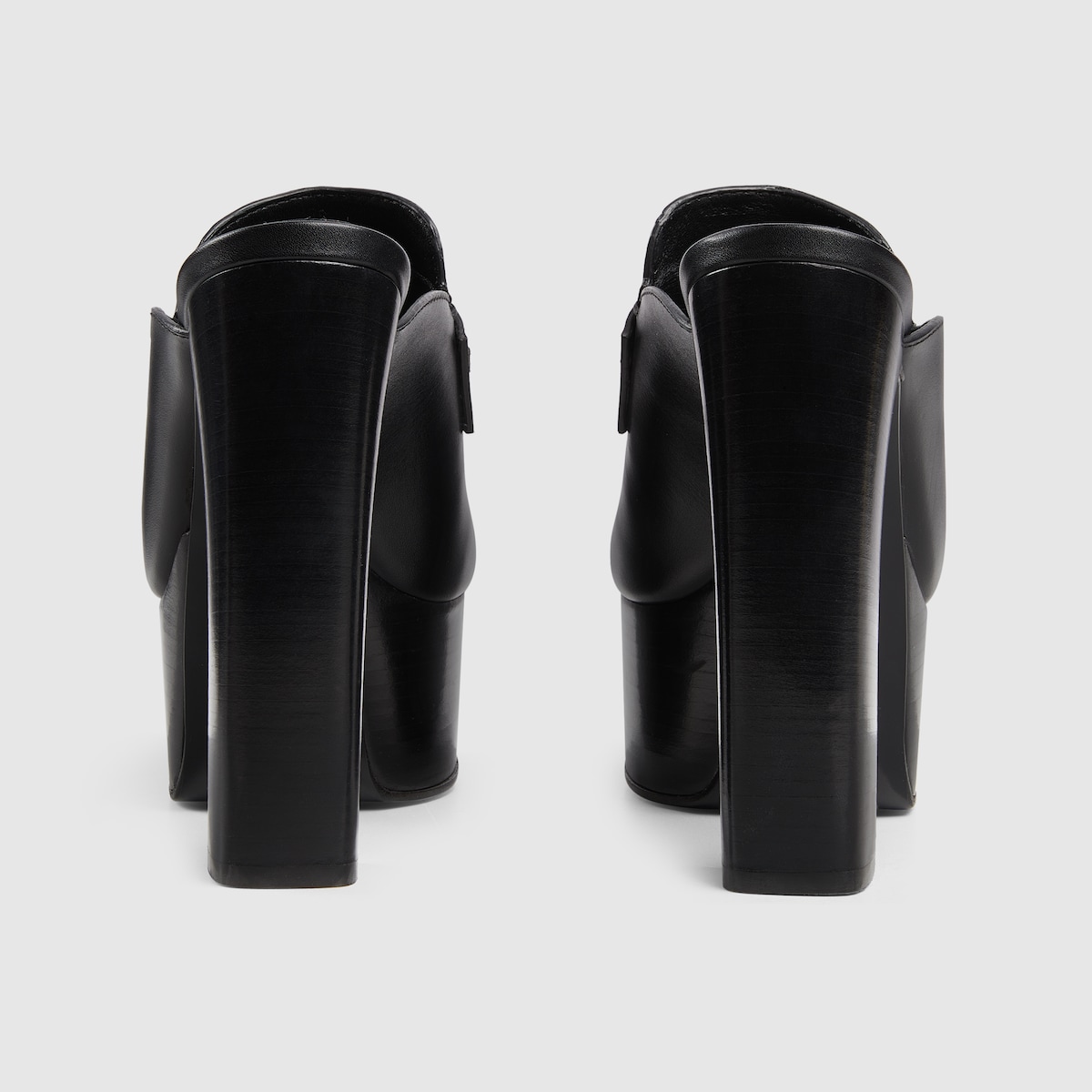 A nod to the House’s equestrian past, the Horsebit has become both a historical and contemporary emblem throughout the years. Here, it defines this women’s platform mule crafted in supple black leather.