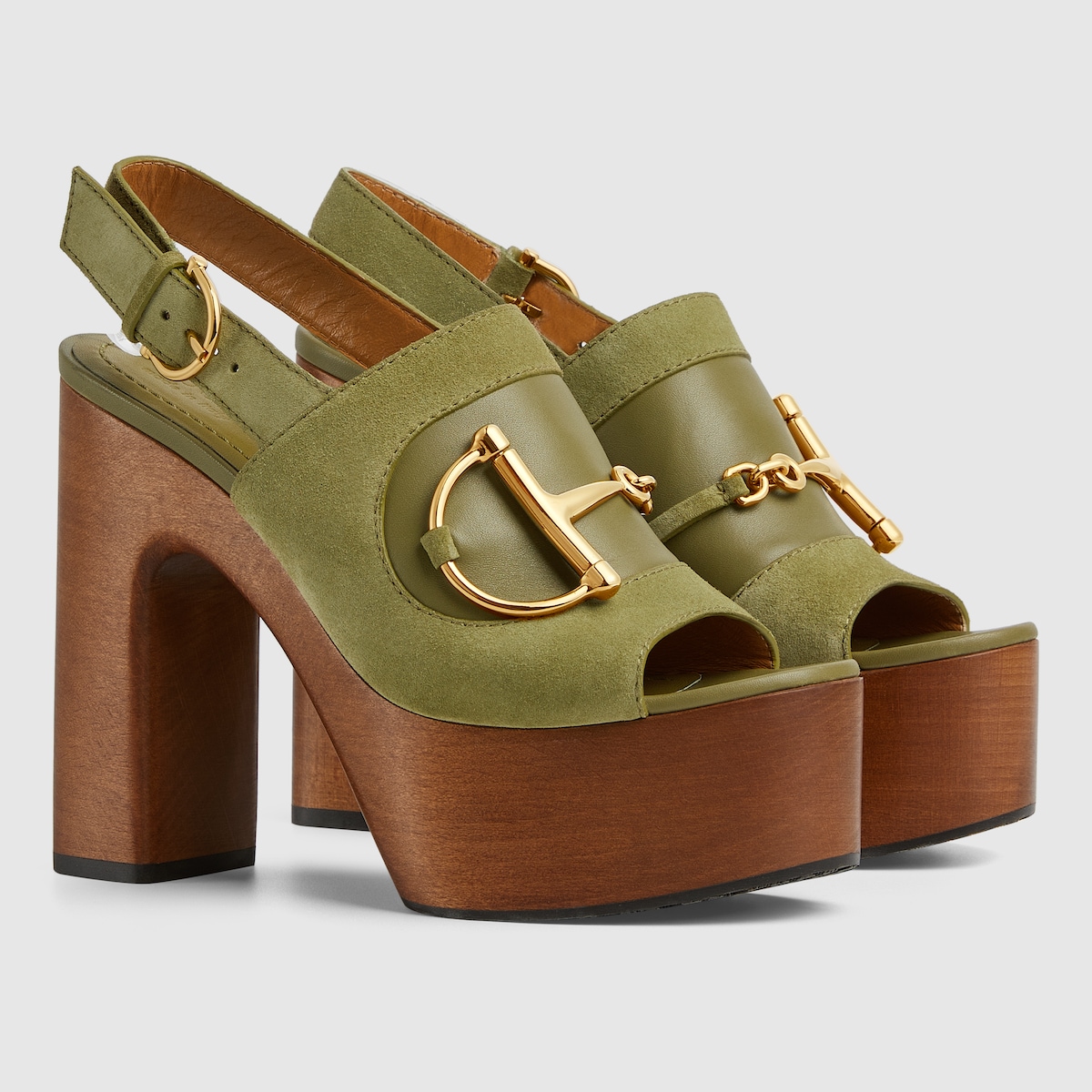 Elevated yet effortless, this women’s platform sandal pairs luxurious suede with the signature Horsebit detail. Set on a sculpted wood platform, the design merges heritage elegance with a bold, contemporary silhouette.