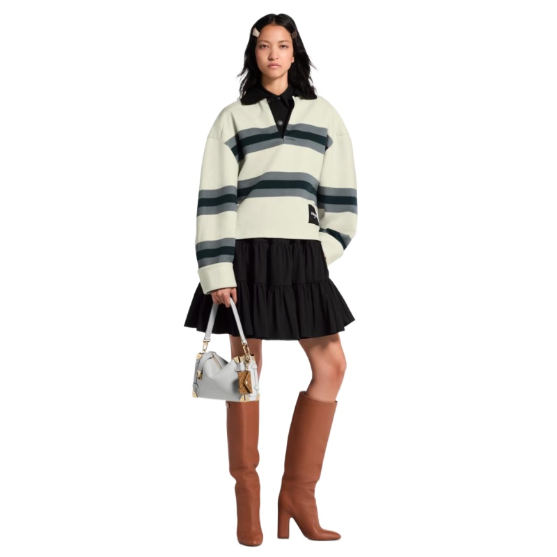 The Donna high boot is reimagined this season in supple, grained calf leather. Designed by Louis Vuitton Women’s Artistic Director Nicolas Ghesquière, this model is distinguished by its slim, tubular form, inspired by the Seventies. Its sleek lines are accented by visible stitching, while its high block heel merges with the upper for a leg-lengthening effect.