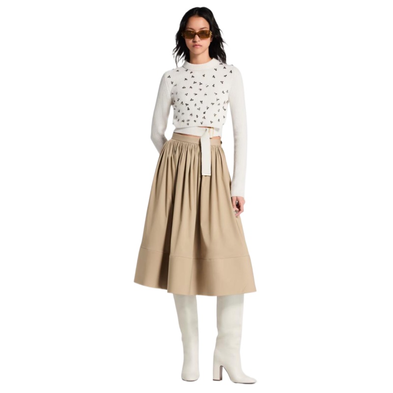 The Donna high boot is reimagined this season in supple, grained calf leather. Designed by Louis Vuitton Women’s Artistic Director Nicolas Ghesquière, this model is distinguished by its slim, tubular form, inspired by the Seventies. Its sleek lines are accented by visible stitching, while its high block heel merges with the upper for a leg-lengthening effect.