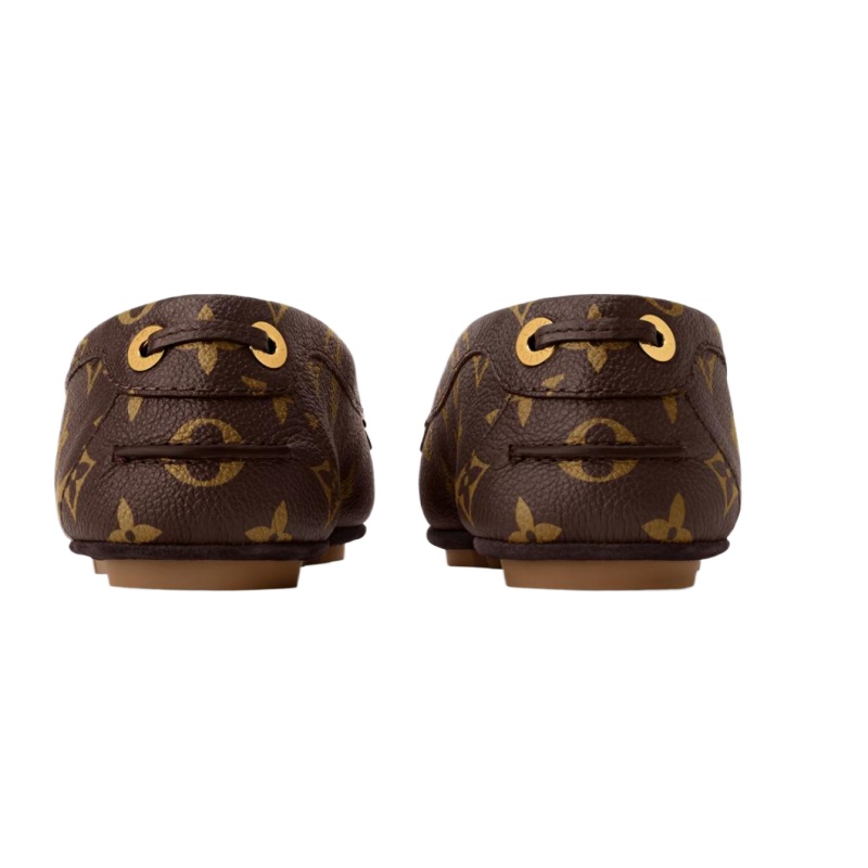 This iteration of the Flore car shoe is crafted from Monogram grained calf leather, which replicates the look of Monogram canvas. This relaxed yet stylish model is notable for its refined details, including engraved studs, eyelets and a padlock accessory, all in gold-toned metal. It is finished with a rubber-pad outsole for lightness and flexibility.