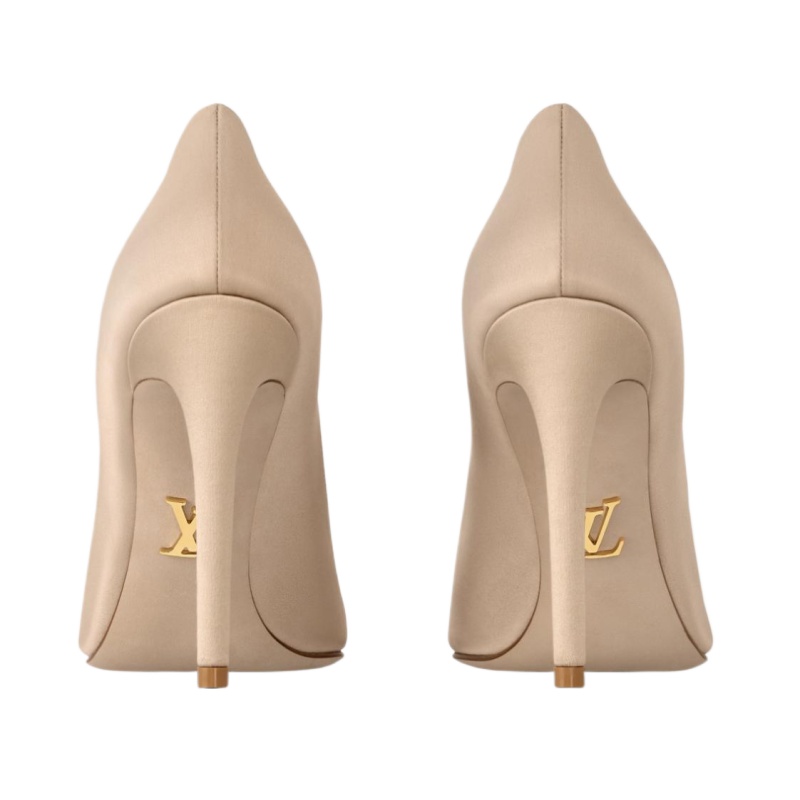 The sleek lines of the Gala pump are complemented by smooth satin. This sophisticated, evening-ready style is characterized by its pointed toe and high stiletto heel. It is finished with a leather outsole, which is discreetly signed with an LV Initials accessory in gold-toned metal.