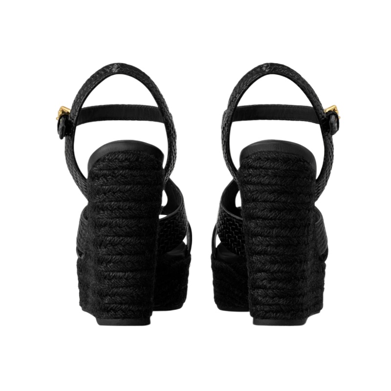 The LV Isola wedge espadrille is a chic, summery style in calf leather, which is printed to create the look of woven leather. This artisanal touch complements the sandal’s chunky wedge heel, which is covered in braided rope, referencing the classic espadrille. A durable rubber outsole completes this design.