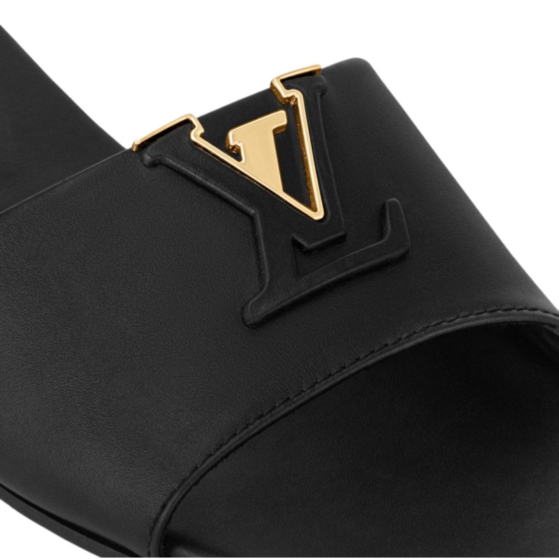 The LV Mare flat mule is a relaxed yet elegant style crafted from soft calf leather. This model is notable for its wide front strap, which is embellished with a partially leather-covered LV Initials accessory referencing the emblematic Capucines bag. A fine yet durable leather outsole completes this design.
