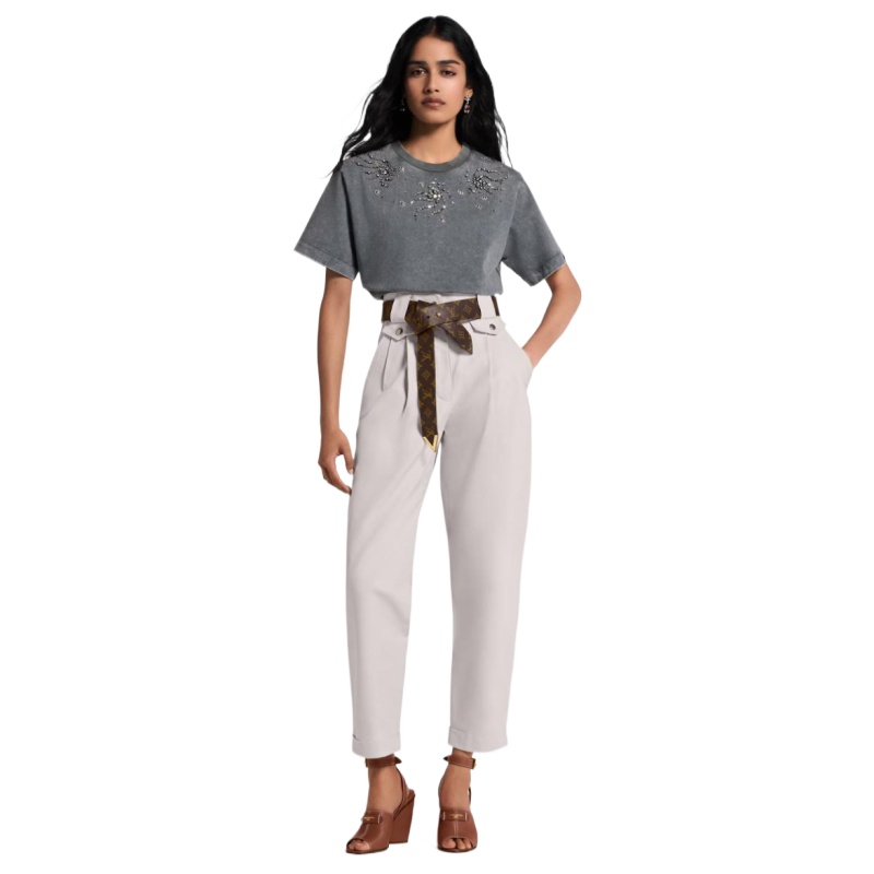 Crafted from grained calf leather, the Trinity sandal has a distinctive, edgy silhouette thanks to its high Cuban heel. Its wide front strap features a leather label embossed with the Louis Vuitton signature. This elegant model is notable for its refined detailing, including visible stitching, piping around the welt, and gold-toned eyelets on the ankle strap.