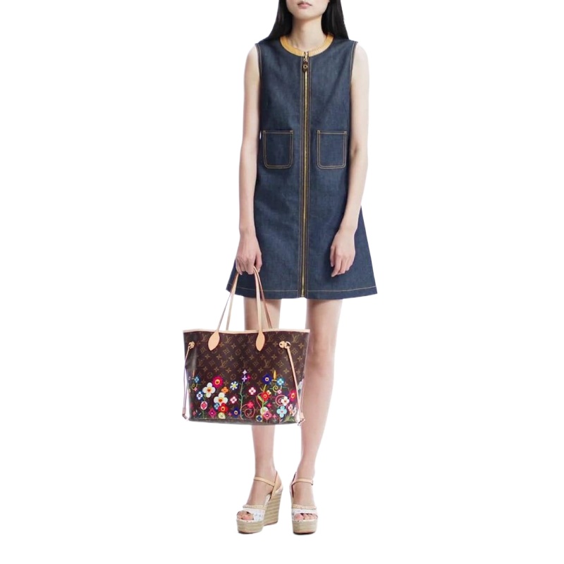 The Helios wedge sandal from the re-edition of the Louis Vuitton x Murakami collection combines an elegant, espadrille-inspired rope sole with a statement coated canvas upper embellished with a joyful rendition of the Monogram motif in playful rainbow tones. The slim ankle strap is secured with a delicate gold-toned buckle, while a studded natural leather trim completes the look with a rebellious touch.