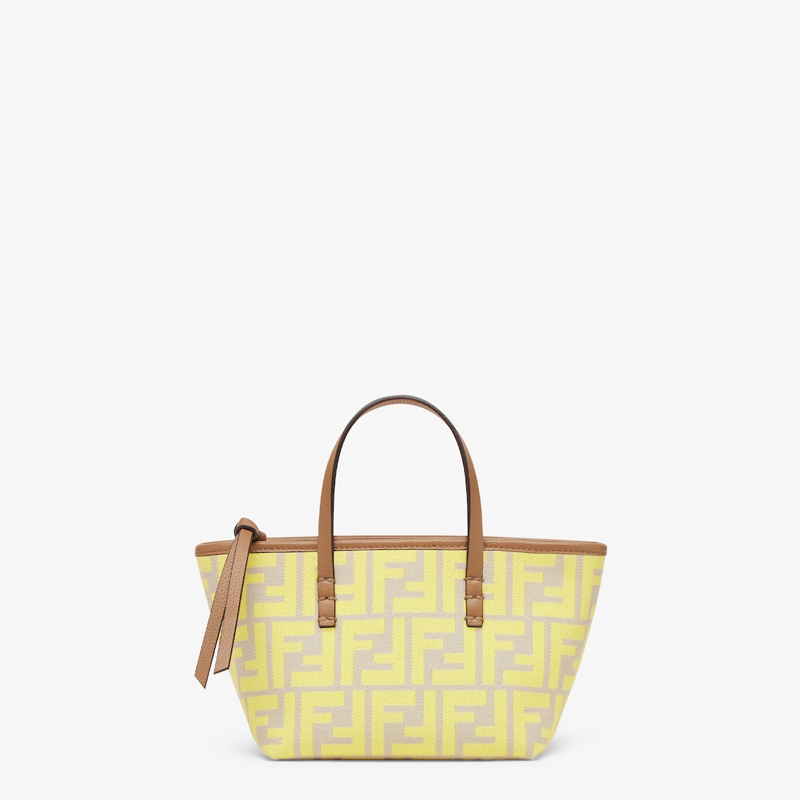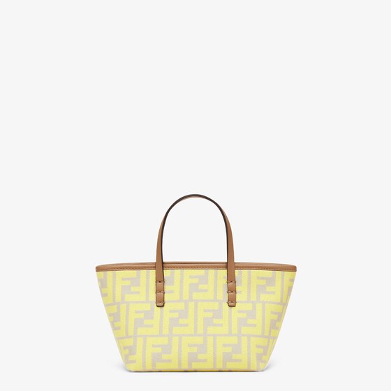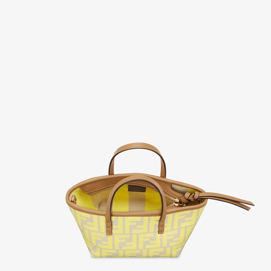 Mini shopping bag made of jacquard fabric with an iconic yellow FF motif. Embellished with beige leather and a zip fastening with a long, knotted leather zip pull.