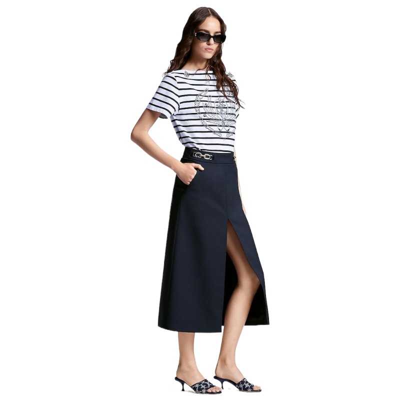 This edition of the Neo Revival mule channels summer’s nautical spirit with its front strap in embroidered fabric, which features the Monogram pattern reinterpreted in sailing ropes. Tonal calf-leather trim complements this casual-chic style, which is finished with a feminine kitten heel and a leather outsole.