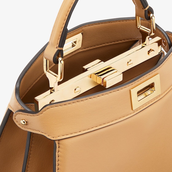 Iconic Peekaboo ISeeU bag in an ideal, compact size. Made from soft, padded, beige nappa leather and embellished with the classic twist lock on both sides.