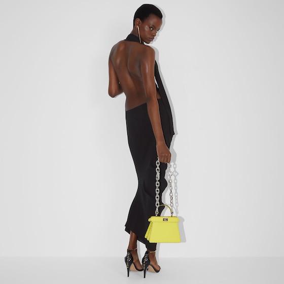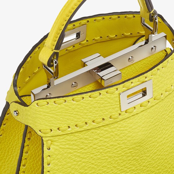 Iconic Peekaboo ISeeU bag in an ideal compact size, made with 306 hand-sewn tone-on-tone macro topstitches, an emblem of the iconic Selleria workmanship.