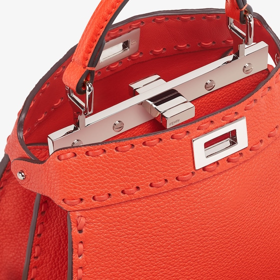 Iconic Peekaboo ISeeU bag in an ideal compact size, made with 306 hand-sewn tone-on-tone macro topstitches, an emblem of the iconic Selleria workmanship.