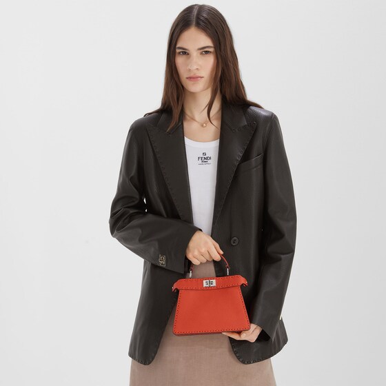 Small iconic Peekaboo ISeeU bag made with 306 hand-sewn macro topstitches, an emblem of the iconic Selleria workmanship handed down through generations of Fendi artisans since 1925.