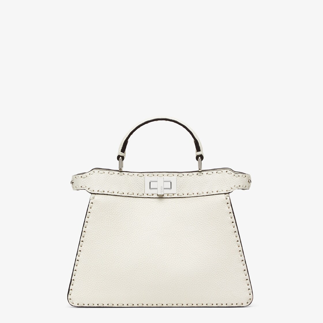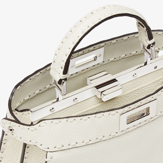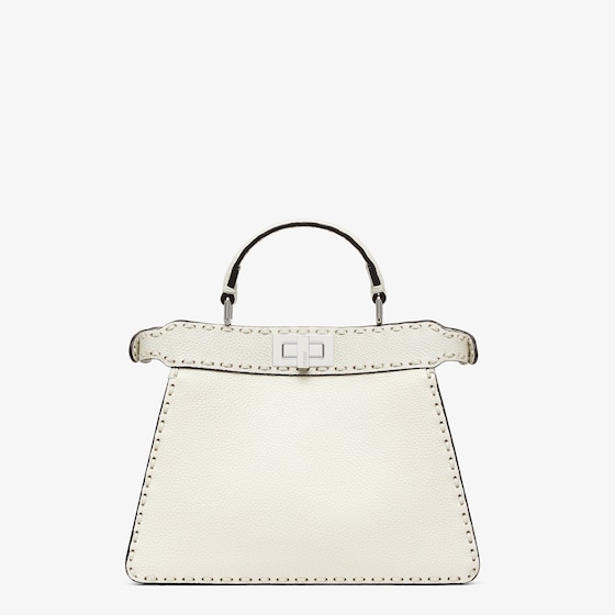 Small iconic Peekaboo ISeeU bag made with 556 tone on tone hand-sewn macro topstitches, an emblem of the iconic Selleria workmanship handed down through generations of Fendi artisans since 1925.