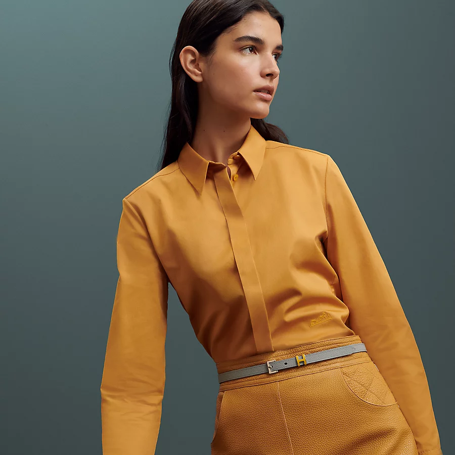 The iconic Pop H becomes a loop passing on a thin and feminine belt, in a new bicolor version with a subtle contrasting detail.