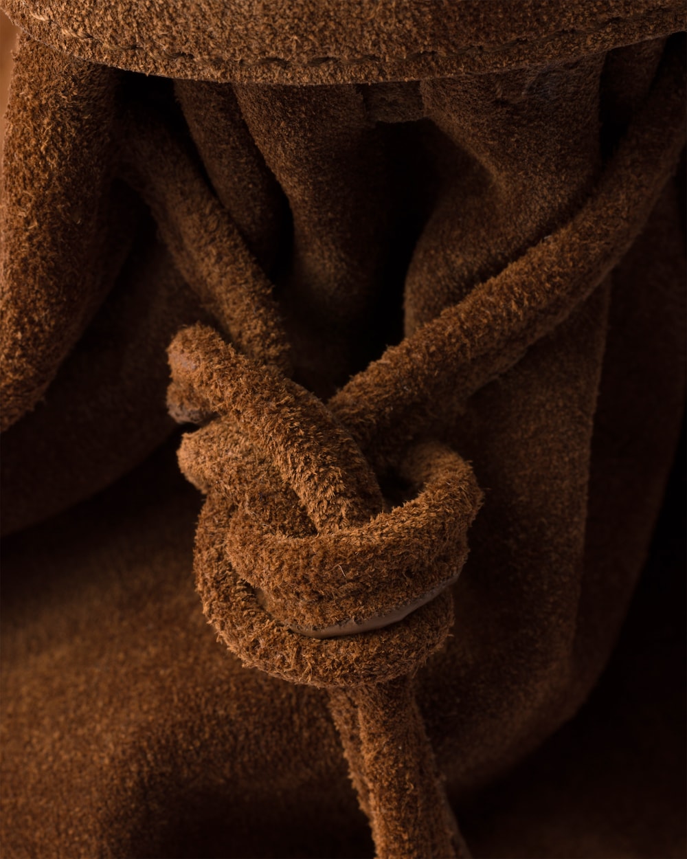 Pragmatic, contemporary elegance defines this suede handbag. The roomy, versatile design is enriched with elegant straps that accentuate the refined simplicity of the style.