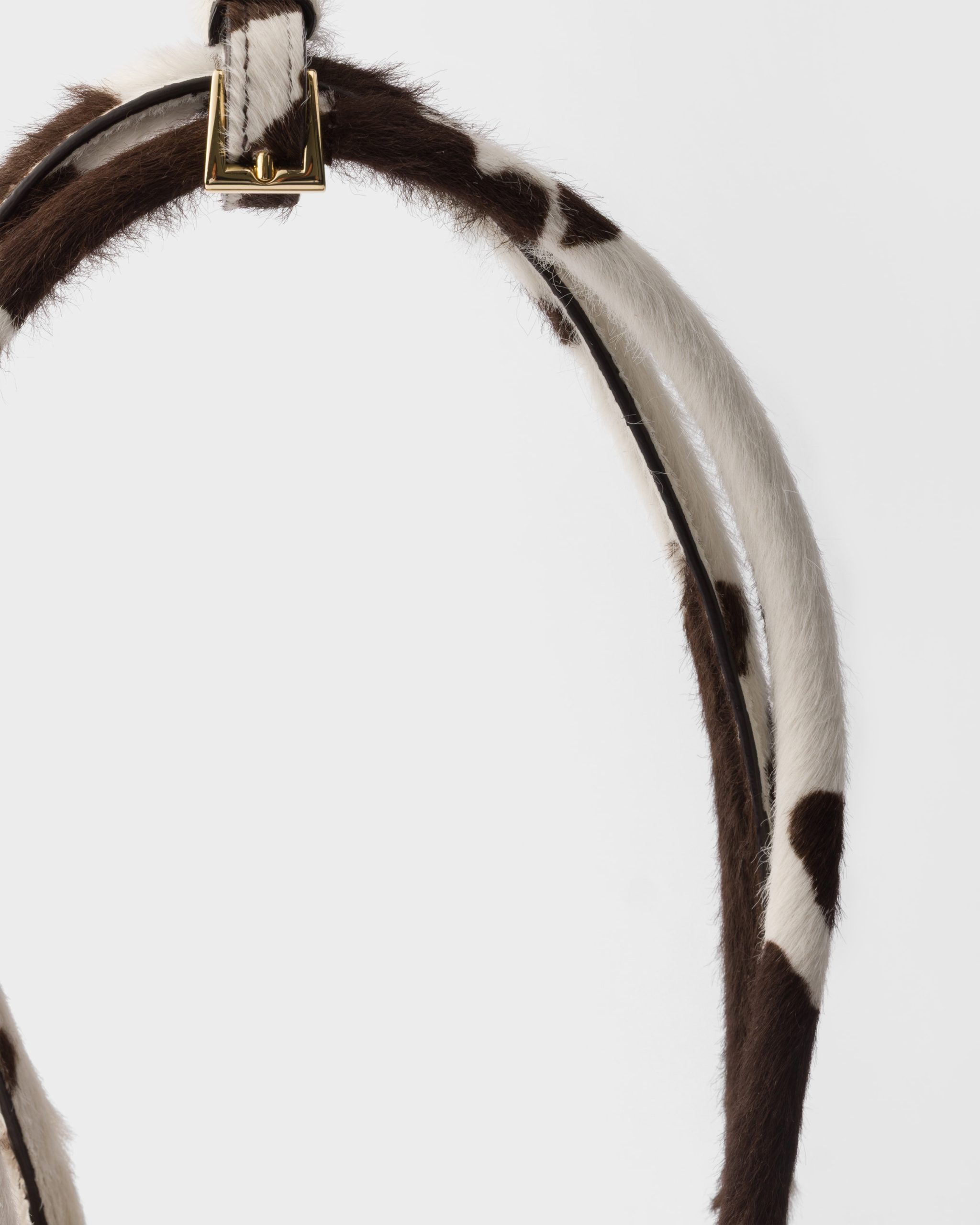 A symbol of innovation, unconventional spirit and a timeless attitude, the Bonnie bag expresses Prada’s dialog with modernity. The accessory with a sophisticated shape is embellished with distinctive metal buckles and side straps. The animal-print leather gives the design a bold, unmistakable style.