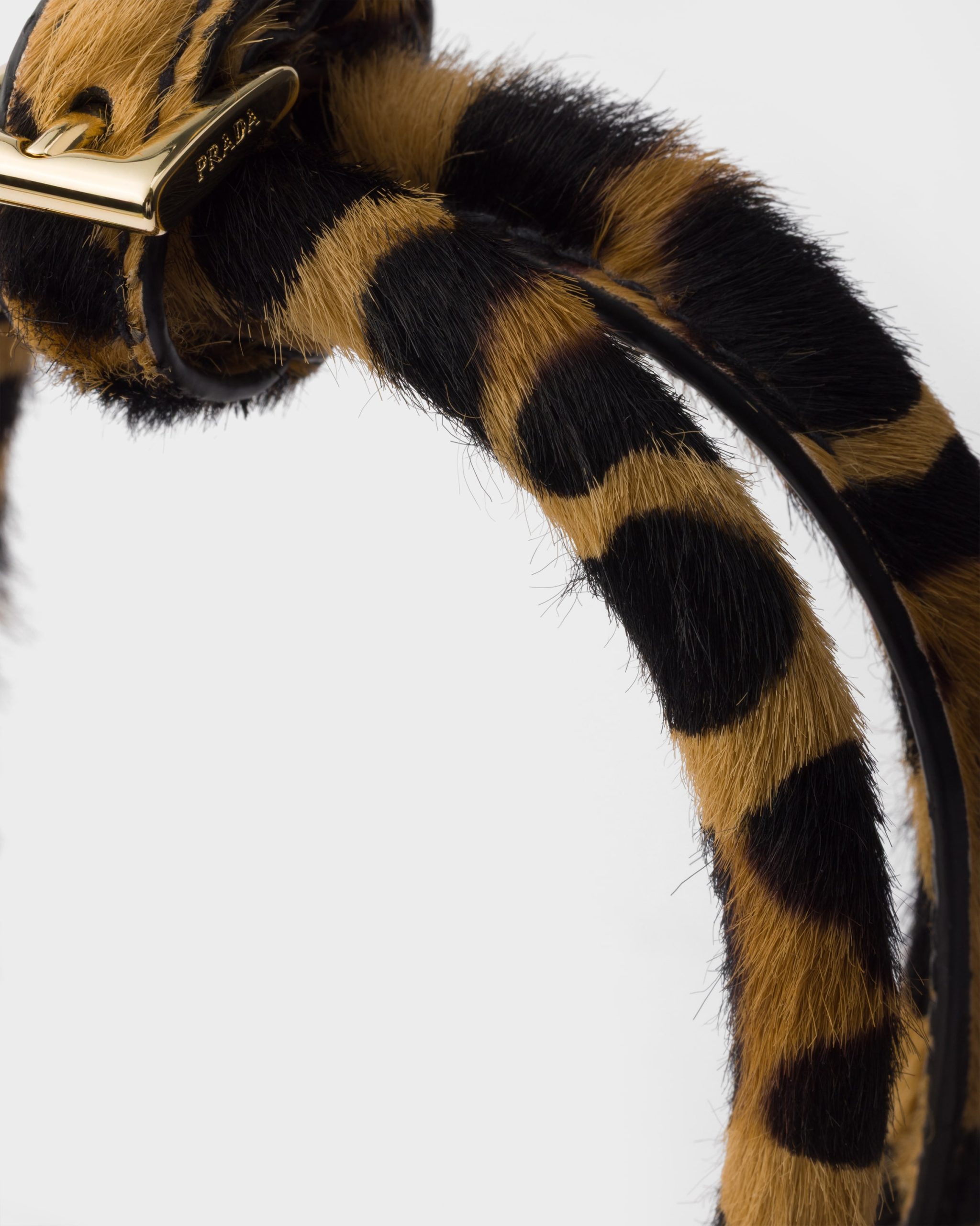 A symbol of innovation, unconventional spirit and a timeless attitude, the Bonnie bag expresses Prada’s dialogue with modernity. The style is presented in a versatile and compact mini format, enriched with distinctive metal buckles and laces on the sides. The animal print leather gives the design unmistakable style.