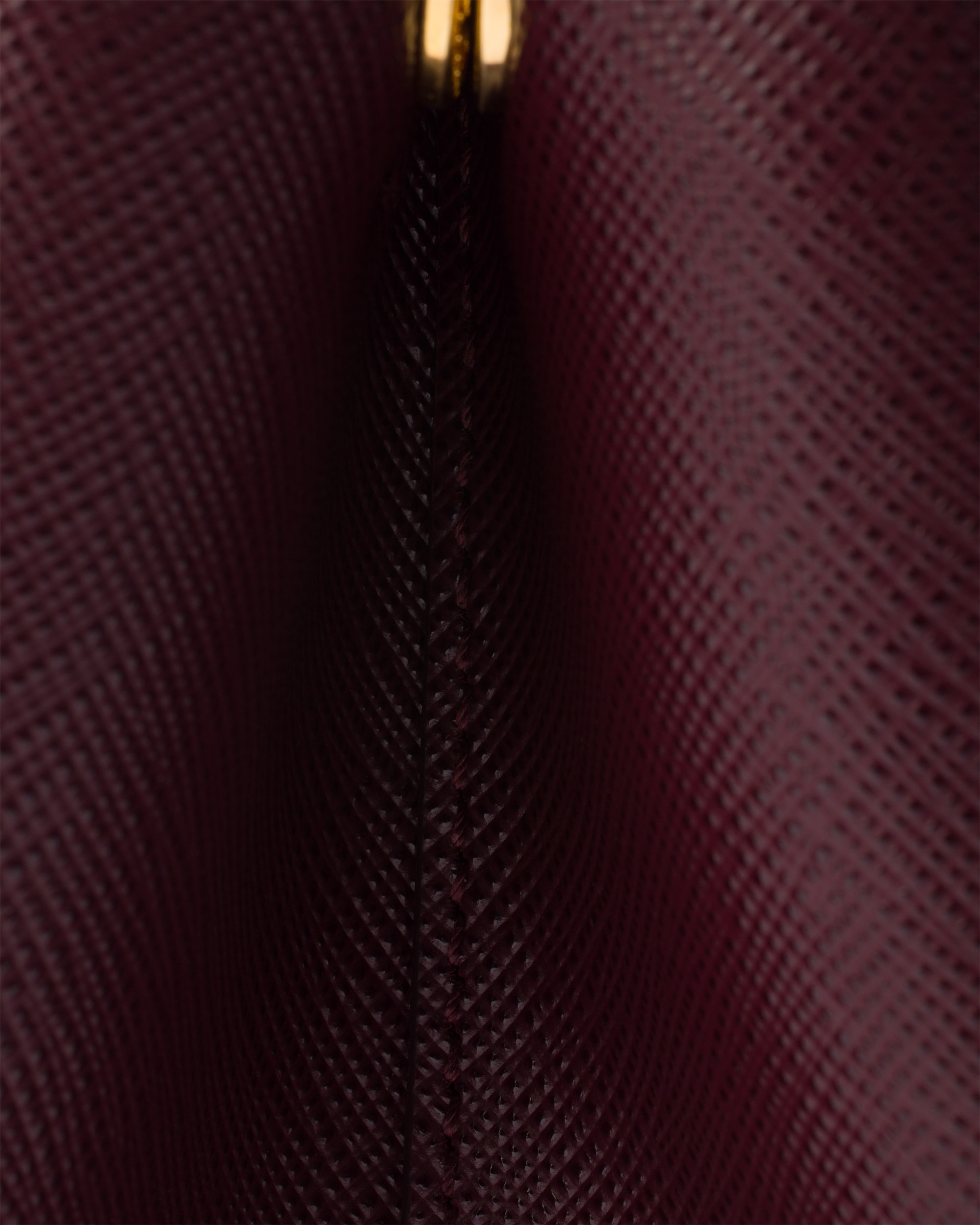 The Prada Galleria bag, which exemplifies Prada’s centennial excellence in luxury leather goods, becomes a reflection of the brand’s modernity and stylistic identity that seeks to interpret kaleidoscopic contemporaneity through a pragmatic design and structured lines. The accessory, presented in the small version, is made of iconic Saffiano leather that was patented by the founder of the brand and features a crosshatch texture and waxed finish. The Prada Galleria bag, named after the historic Prada store opened by Mario Prada in 1913 in Galleria Vittorio Emanuele II in Milan, expresses the quintessence of the brand’s timeless elegance.