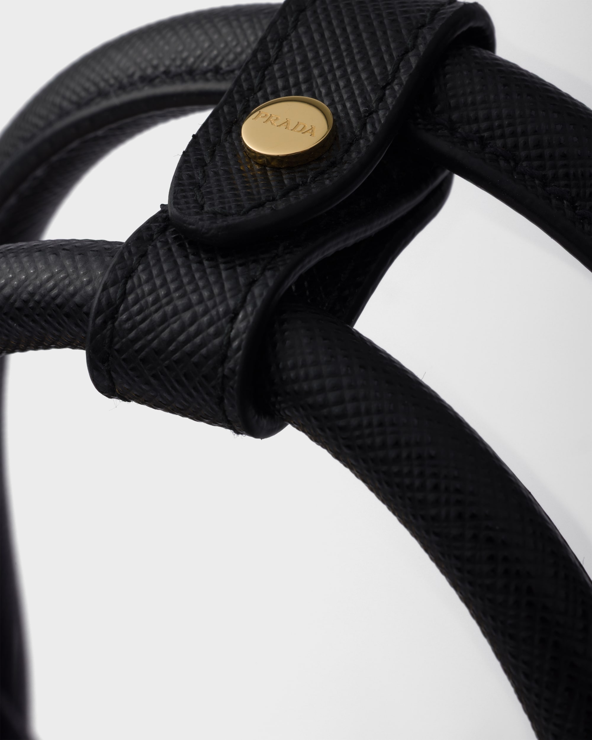The Prada Galleria bag, which exemplifies Prada’s centennial excellence in luxury leather goods, becomes a reflection of the brand’s modernity and stylistic identity that seeks to interpret kaleidoscopic contemporaneity through a pragmatic design and structured lines. The accessory, presented in the small version, is made of iconic Saffiano leather that was patented by the founder of the brand and features a crosshatch texture and waxed finish. The Prada Galleria bag, named after the historic Prada store opened by Mario Prada in 1913 in Galleria Vittorio Emanuele II in Milan, expresses the quintessence of the brand’s timeless elegance.