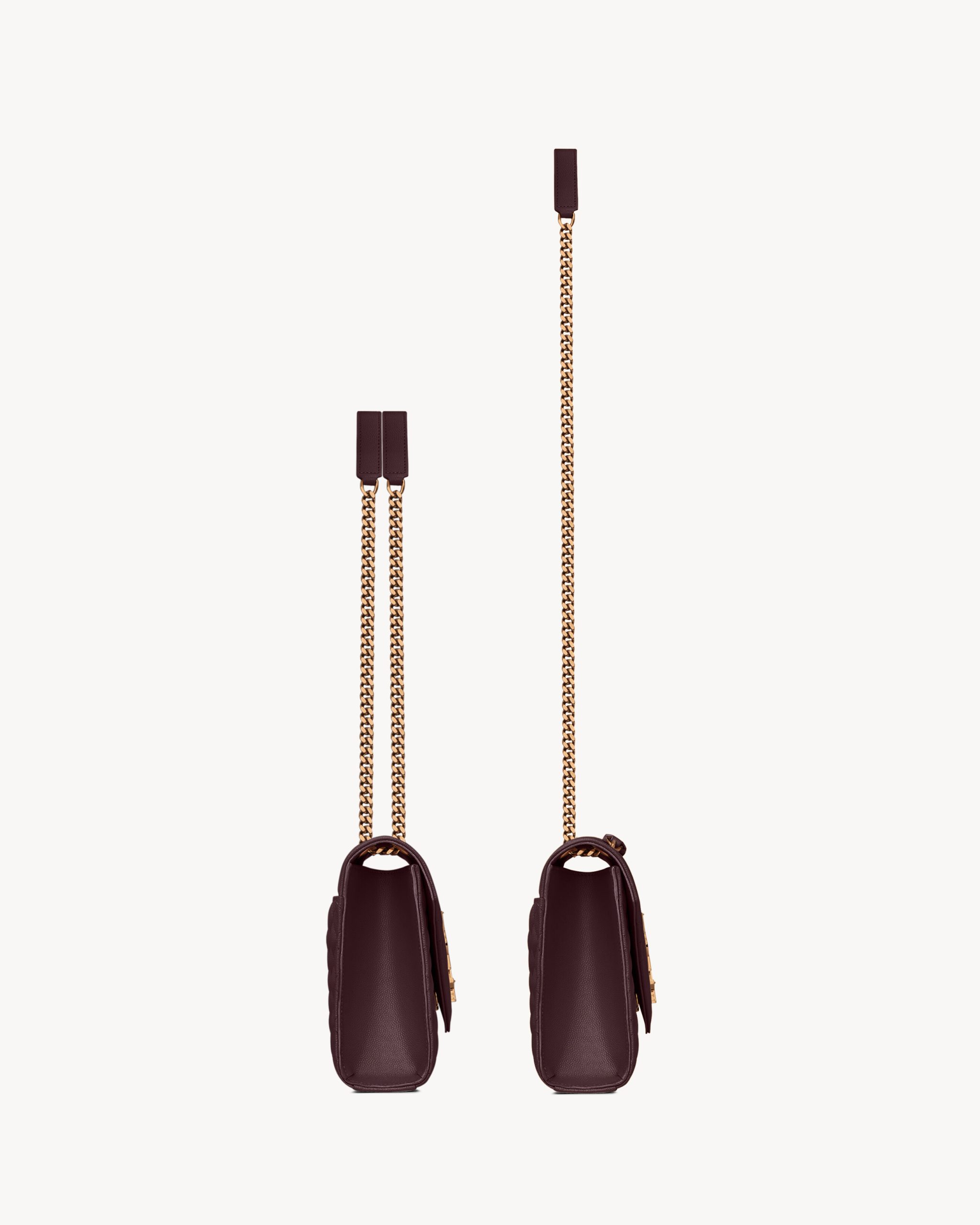 This versatile piece features a sliding leather-and-chain strap that can be worn two ways.