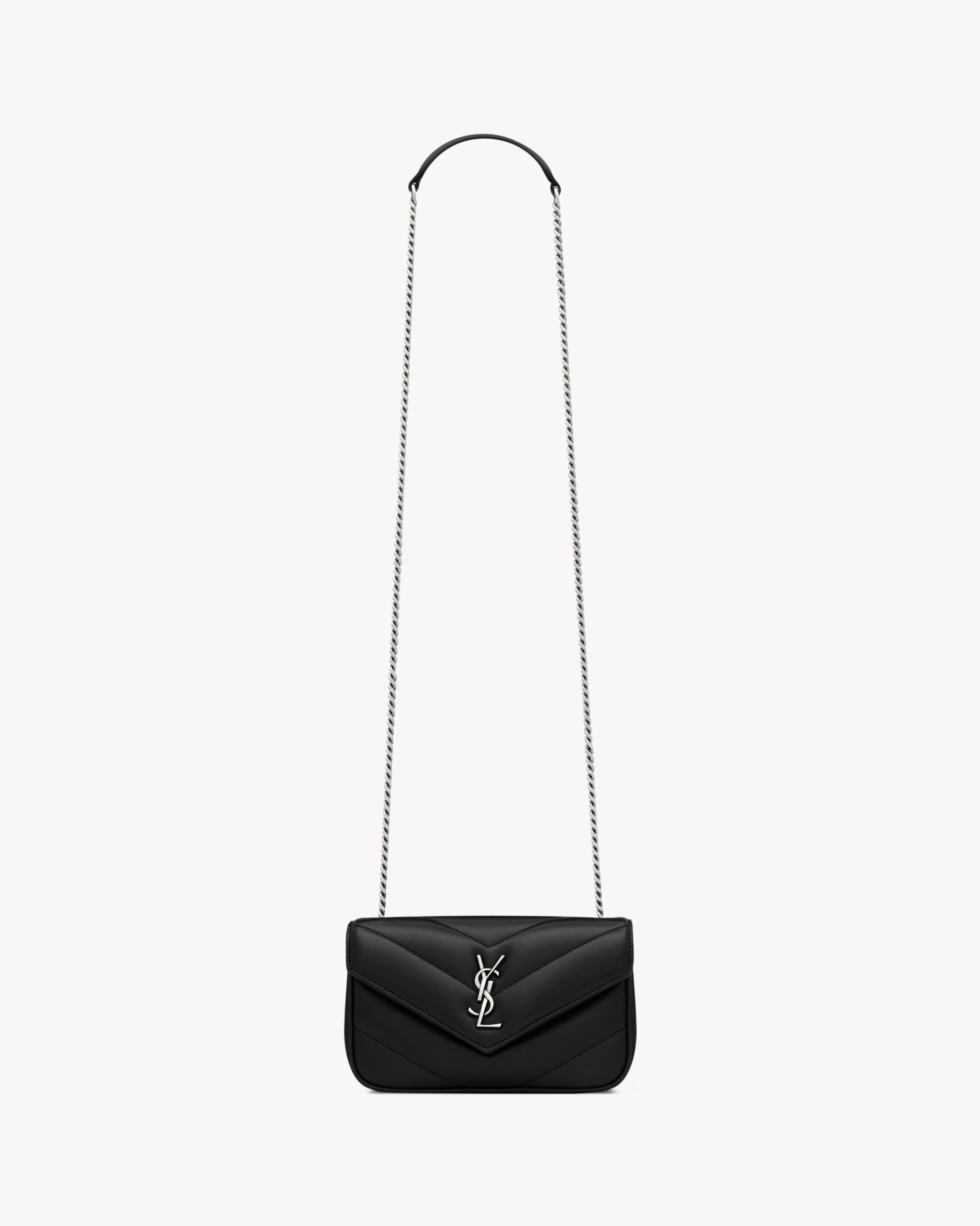 The mini version of the LOULOU chain bag in lambskin, decorated with the iconic chevron-quilted topstitching.